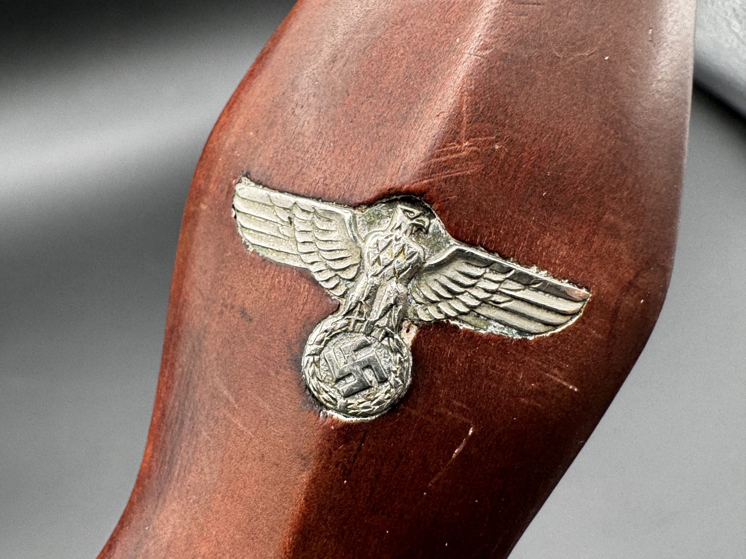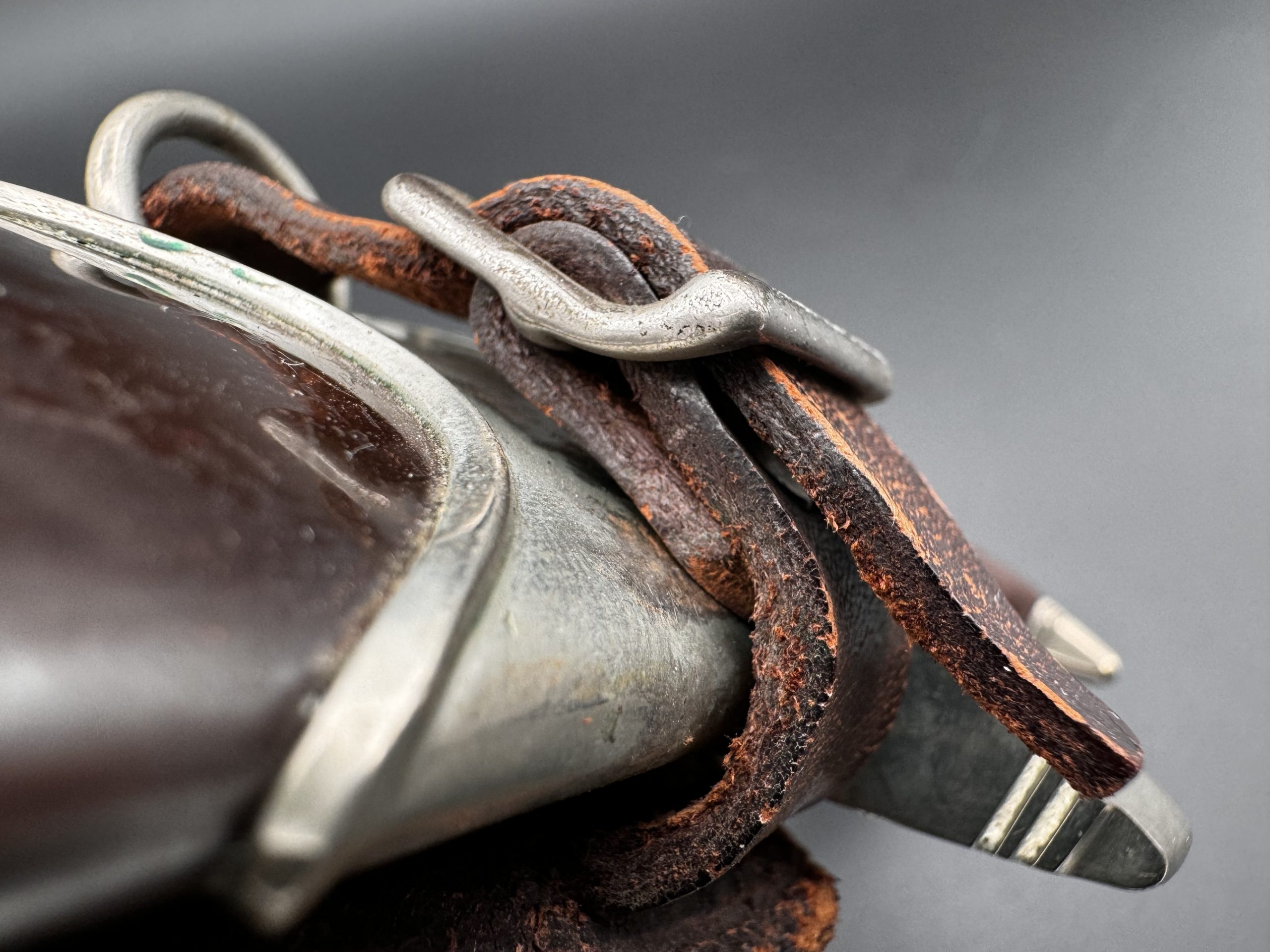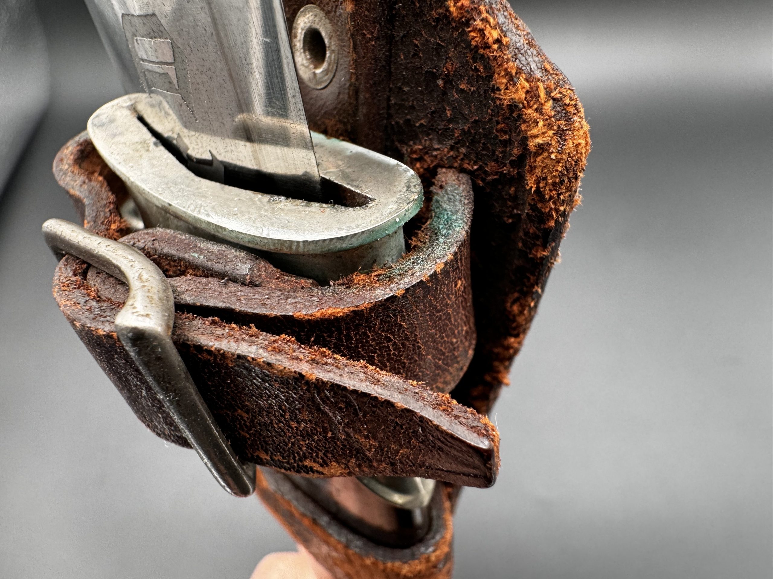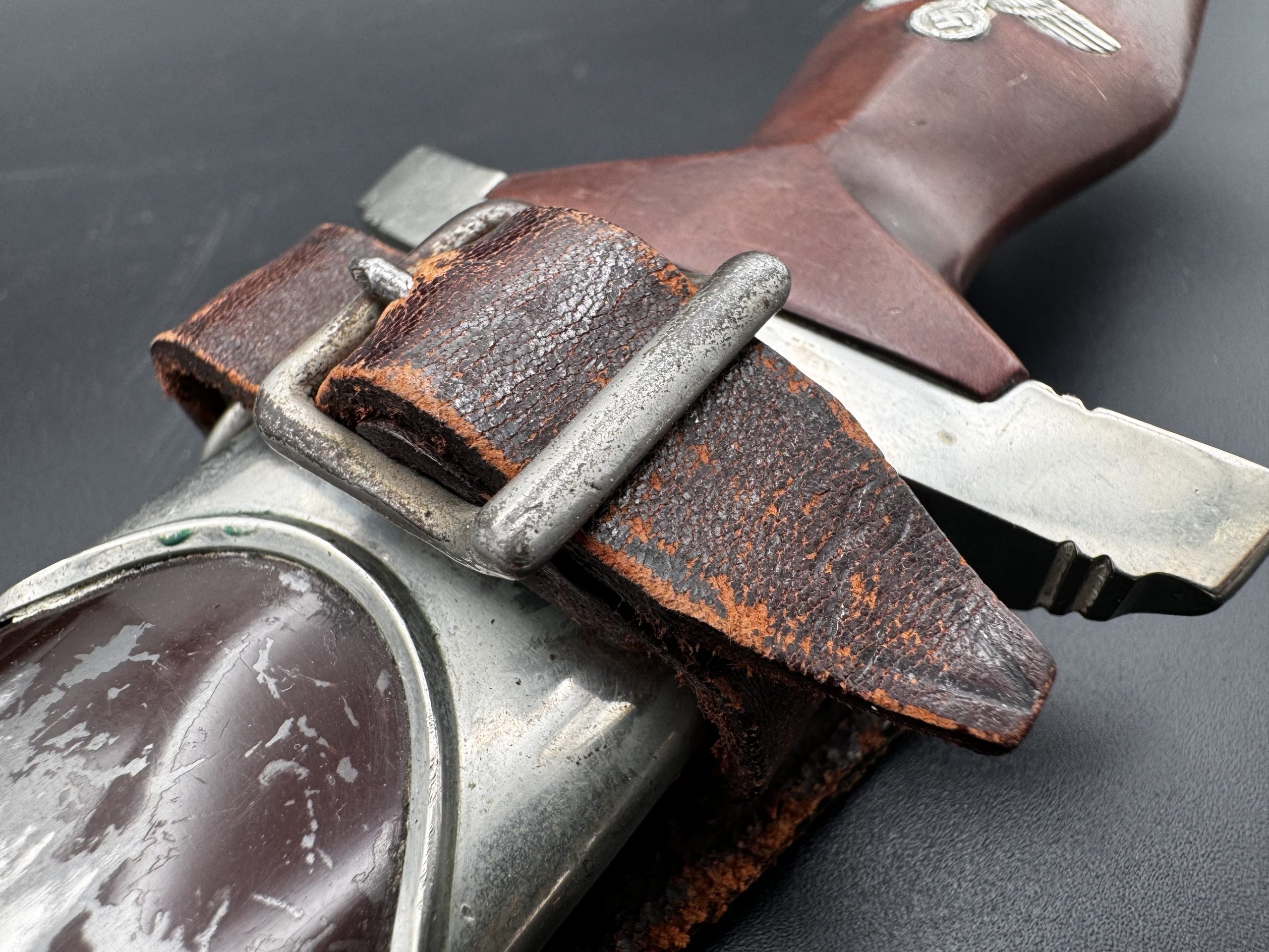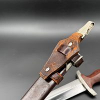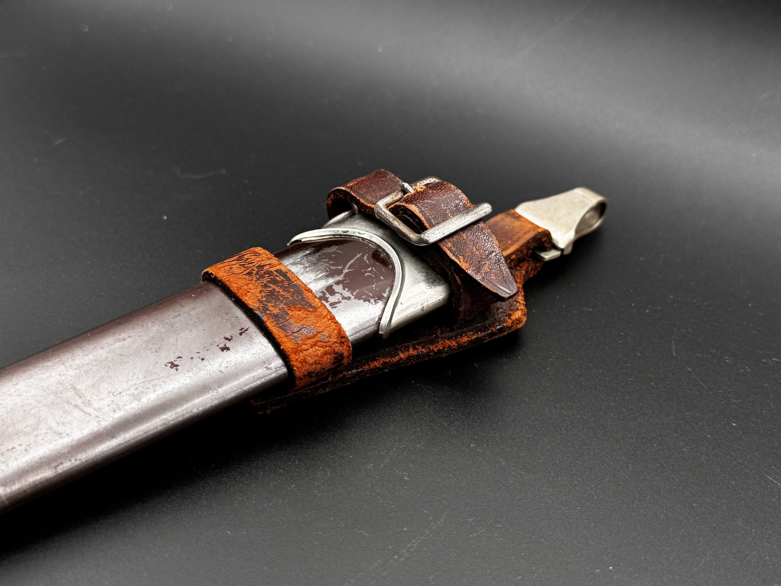 Ножны без вмешательств. Укомплектованы родным ранним вертикальным подвесом именно с этого кинжала. Не снимался.