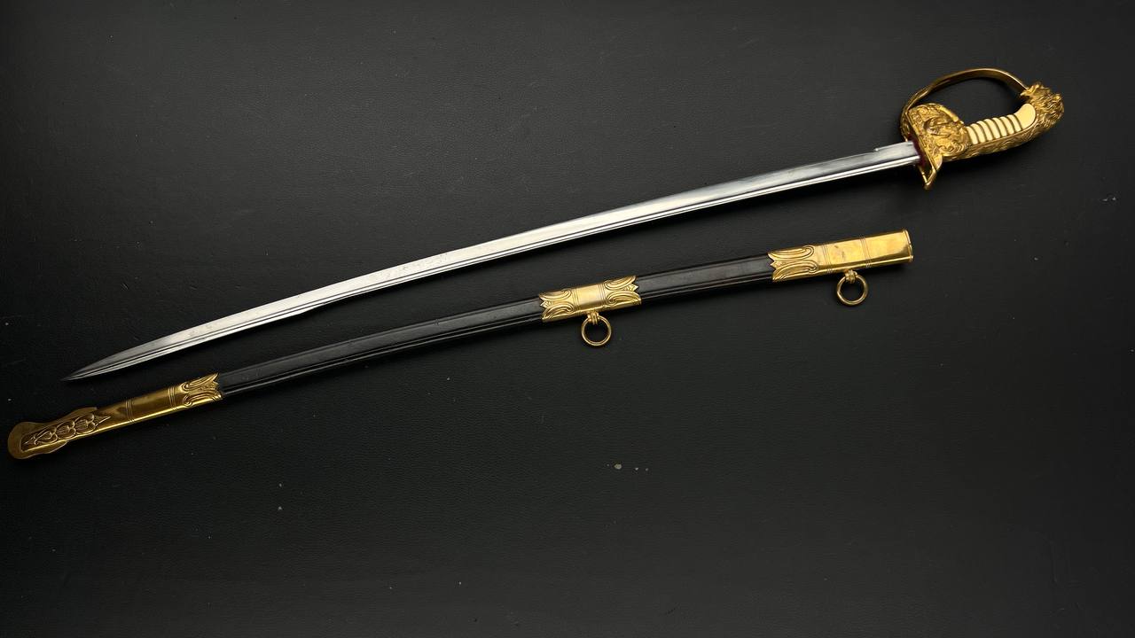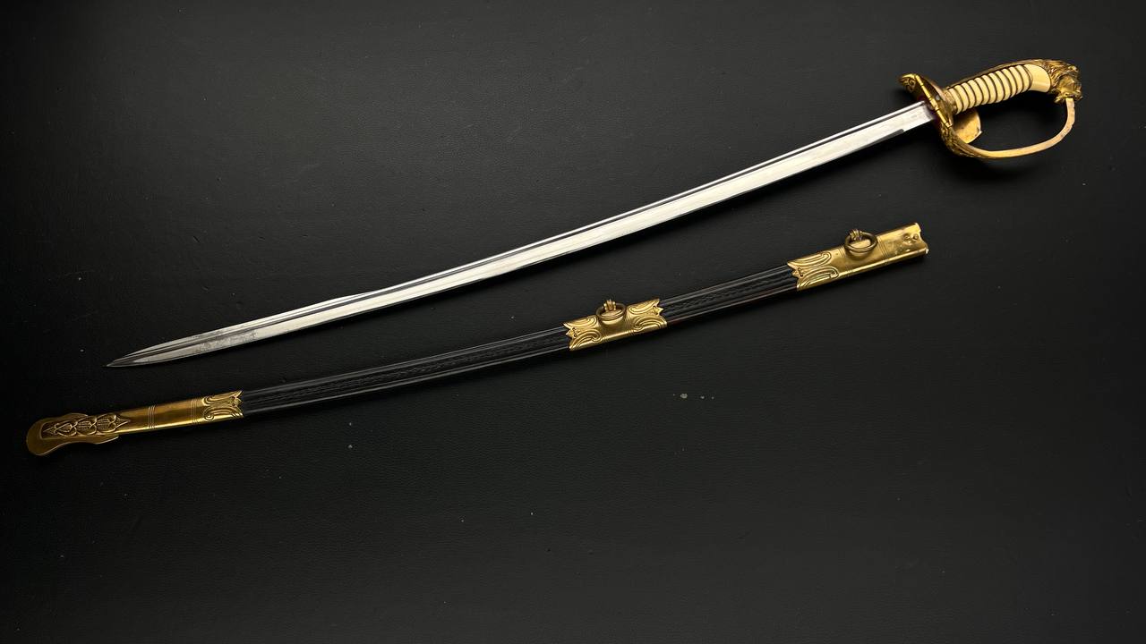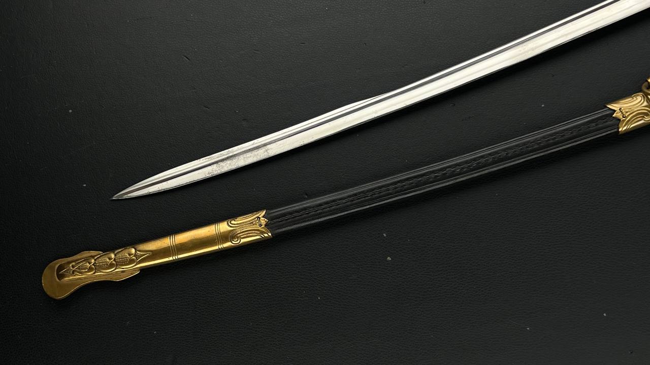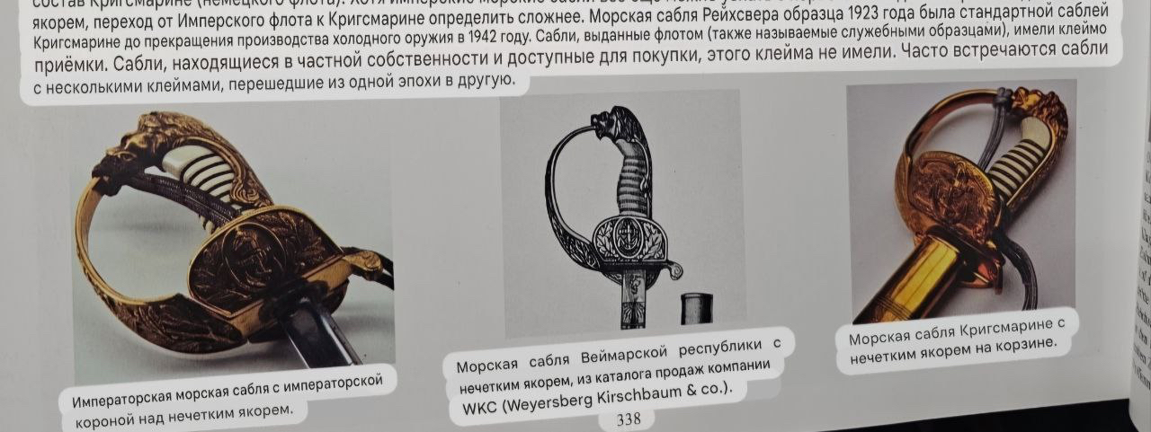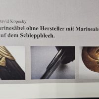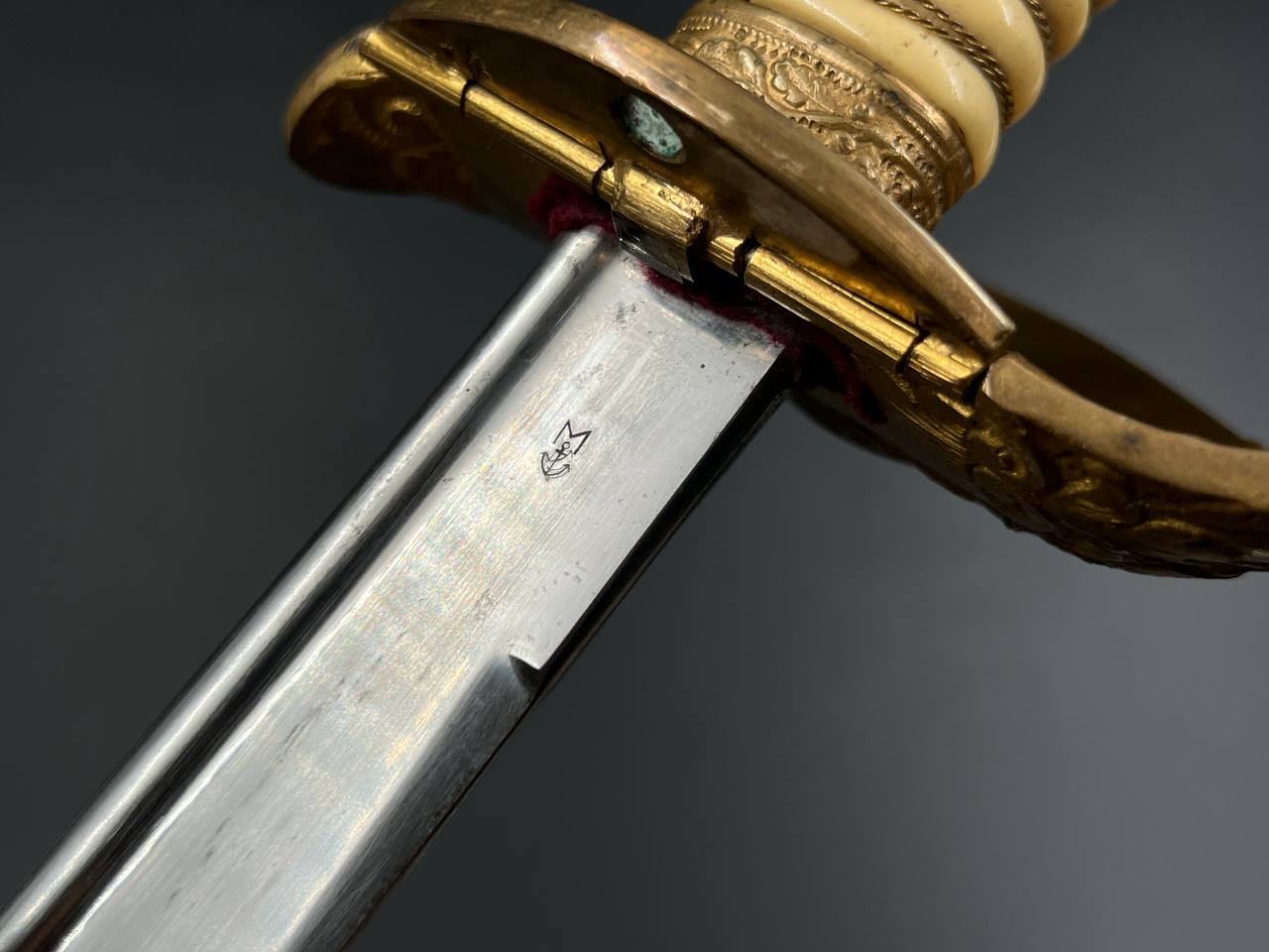 Судя по имеющимся клеймам, сабля является не частной покупкой, а официально выданным флотом служебным образцом, что подтверждается соответствующими служебными маркировками. Клеймо в виде буквы «M» над якорем представляет собой военно-морской приёмочный штамп первого образца. Маркировка «O.92» расшифровывается как «O» — Ostsee (Балтийское море), «92» — номер оружия.