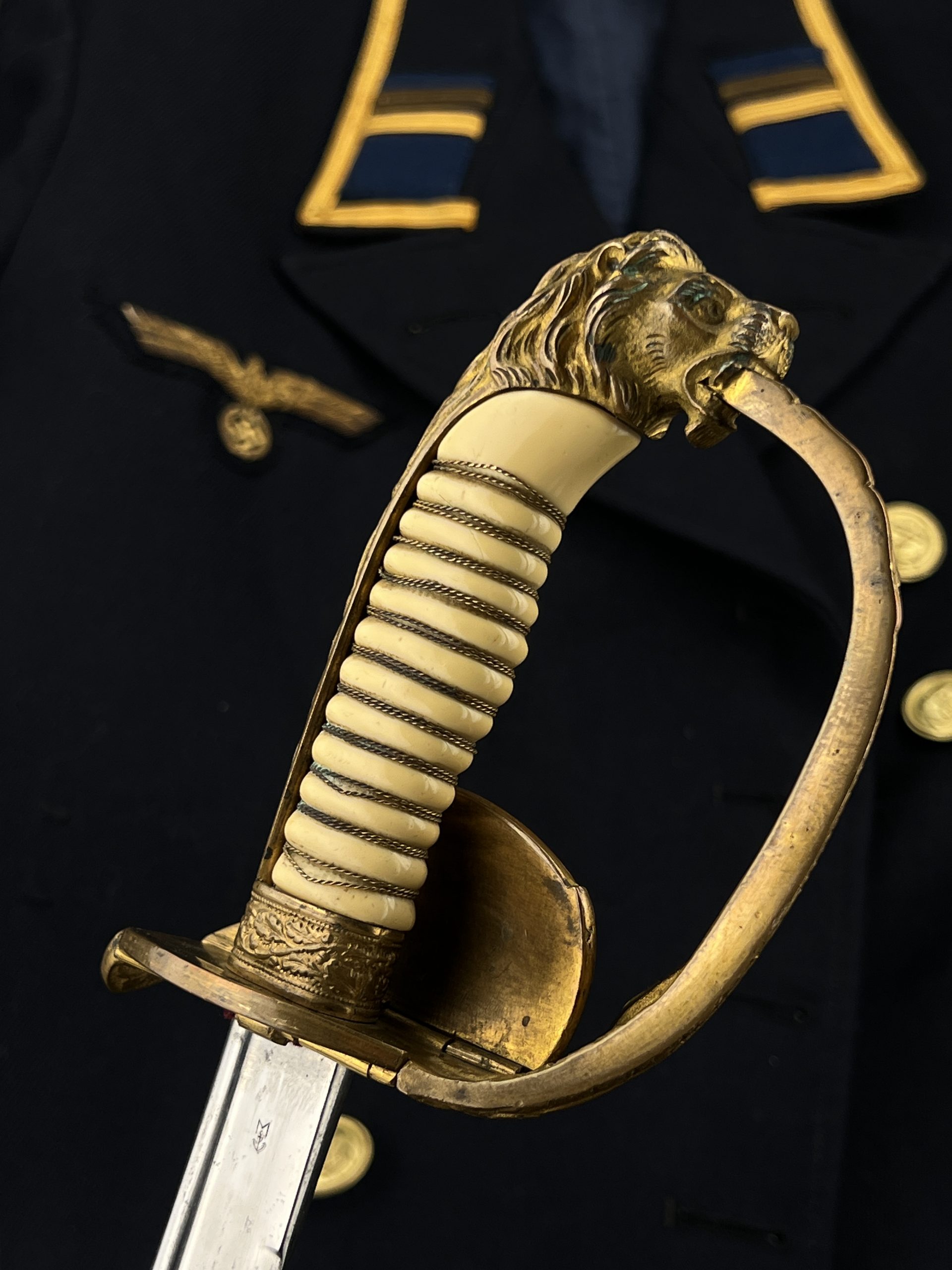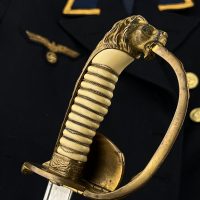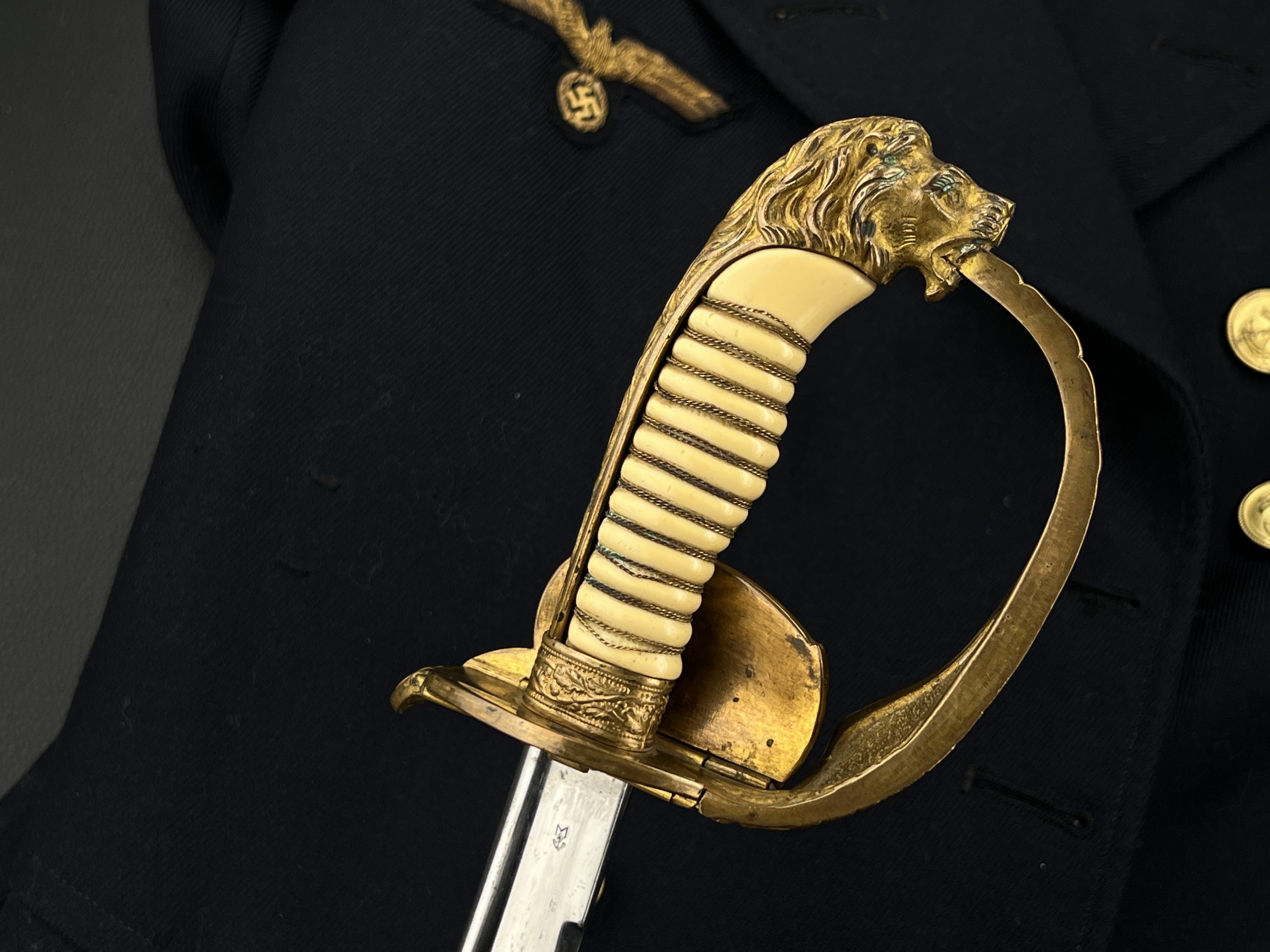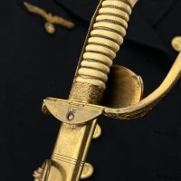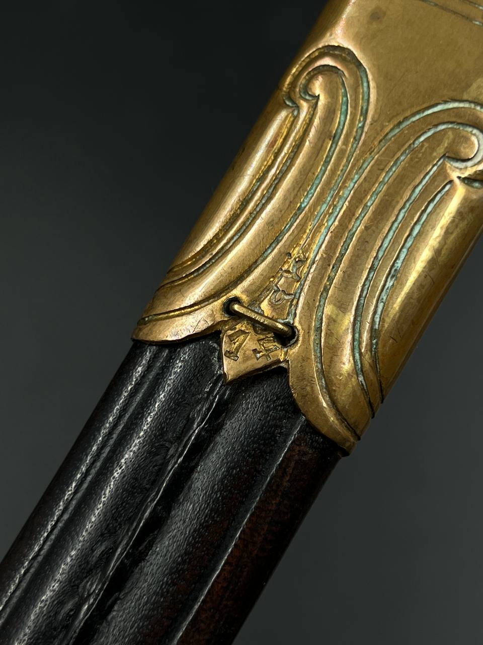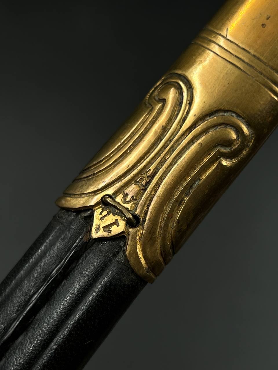 Судя по имеющимся клеймам, сабля является не частной покупкой, а официально выданным флотом служебным образцом, что подтверждается соответствующими служебными маркировками. Клеймо в виде буквы «M» над якорем представляет собой военно-морской приёмочный штамп первого образца. Маркировка «O.92» расшифровывается как «O» — Ostsee (Балтийское море), «92» — номер оружия.