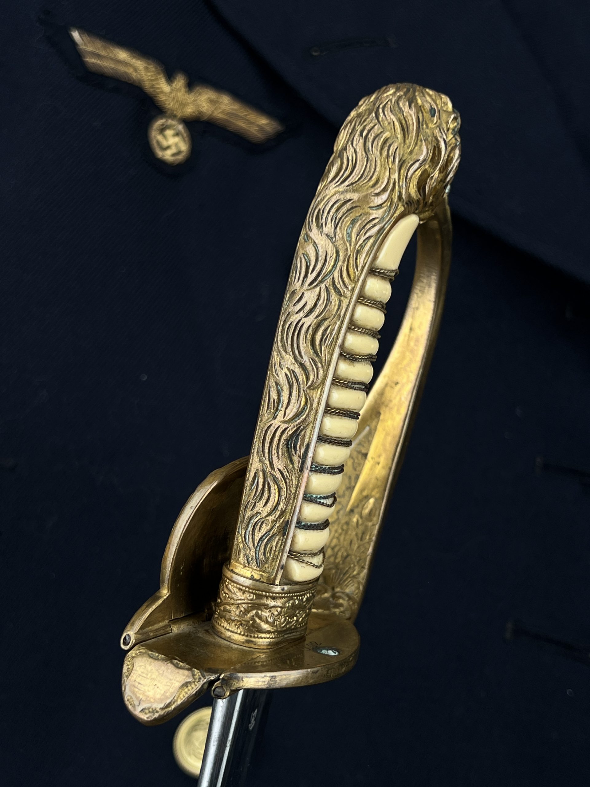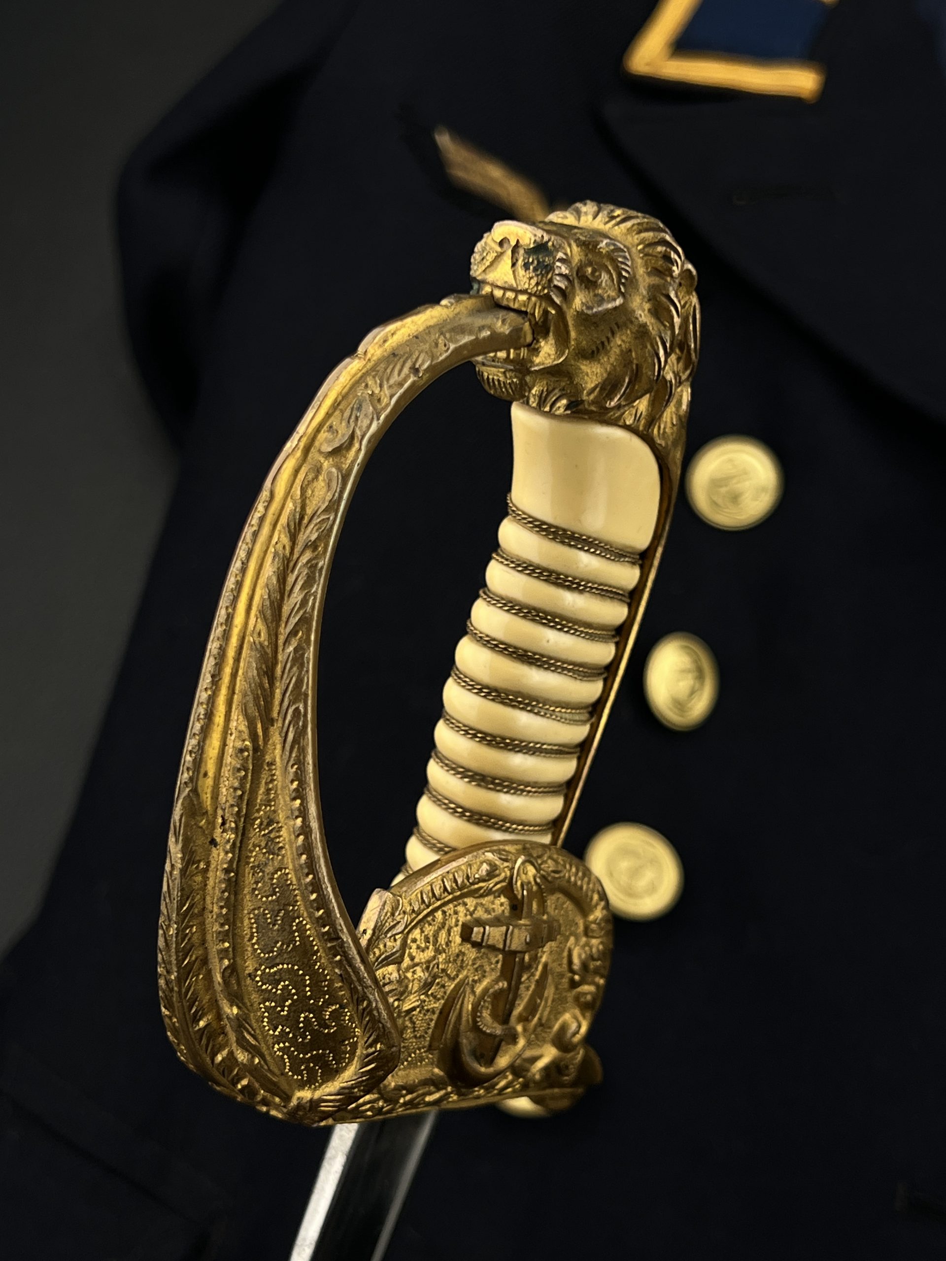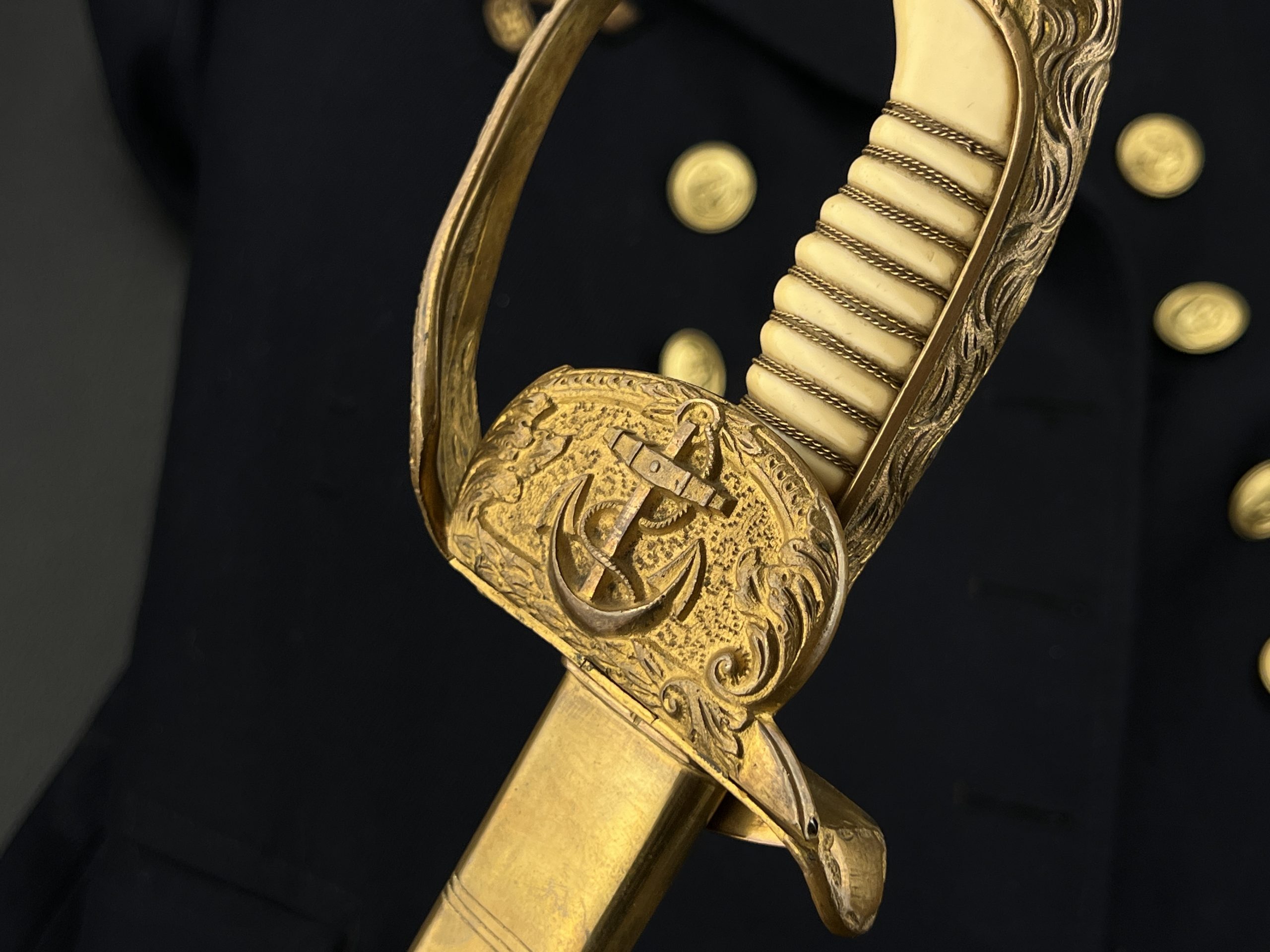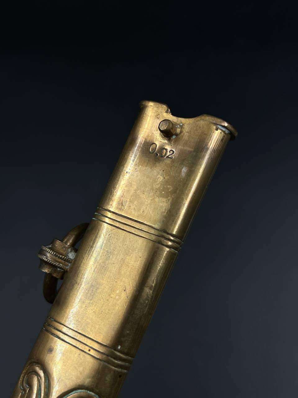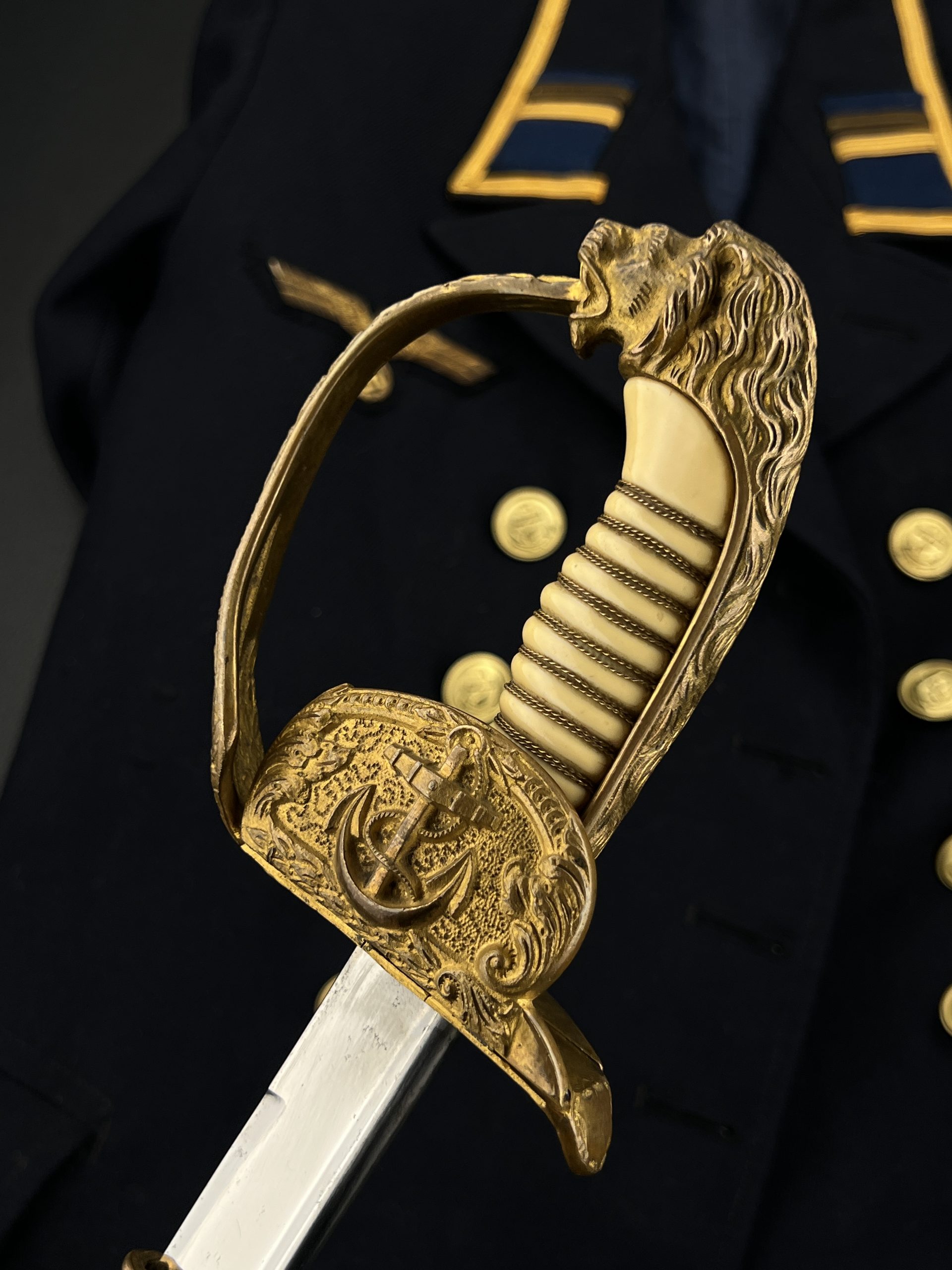 Судя по имеющимся клеймам, сабля является не частной покупкой, а официально выданным флотом служебным образцом, что подтверждается соответствующими служебными маркировками. Клеймо в виде буквы «M» над якорем представляет собой военно-морской приёмочный штамп первого образца. Маркировка «O.92» расшифровывается как «O» — Ostsee (Балтийское море), «92» — номер оружия.