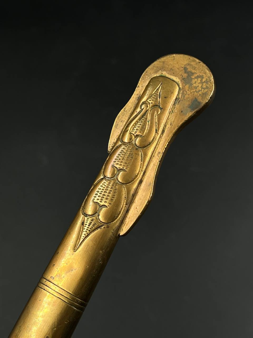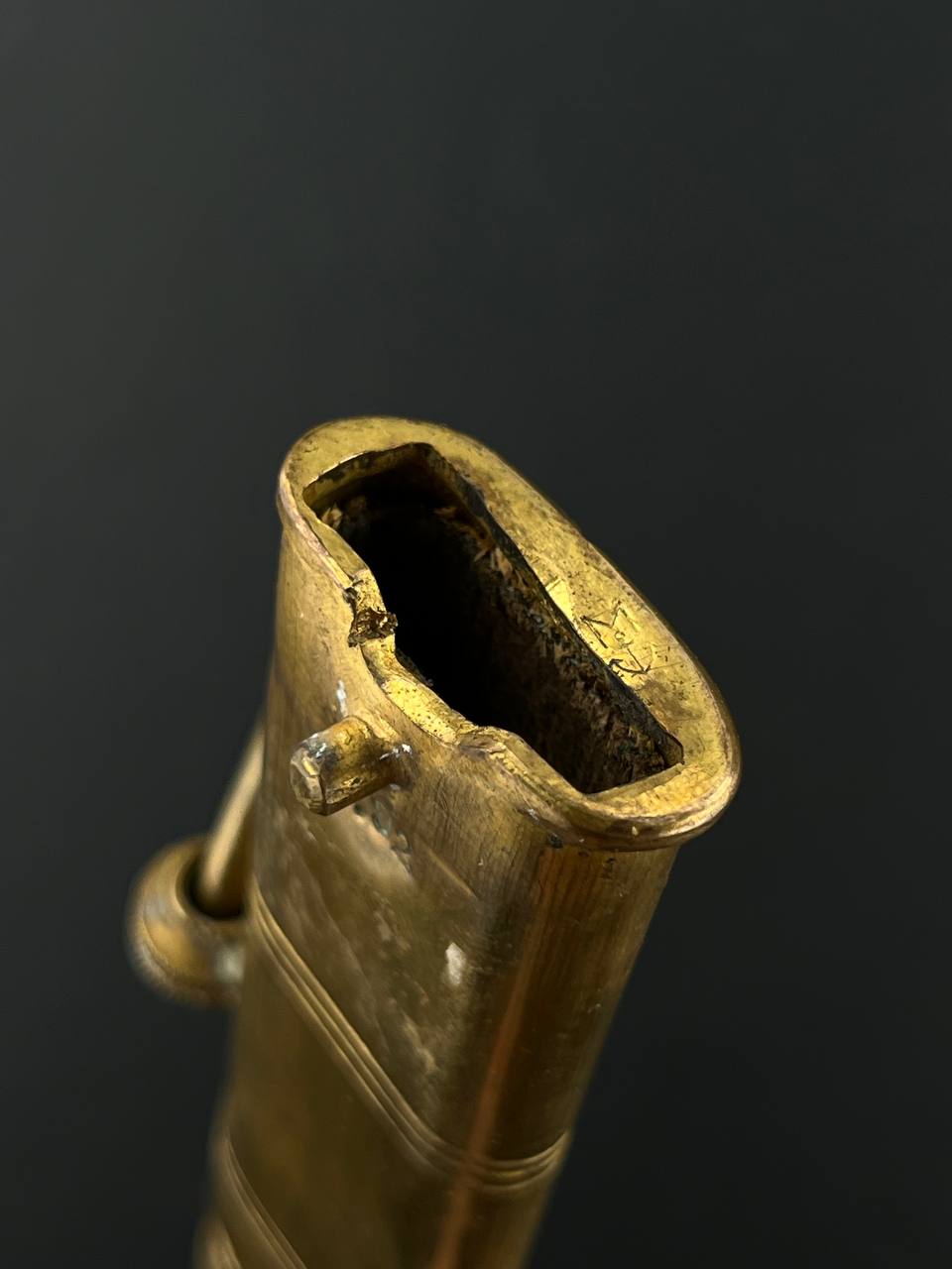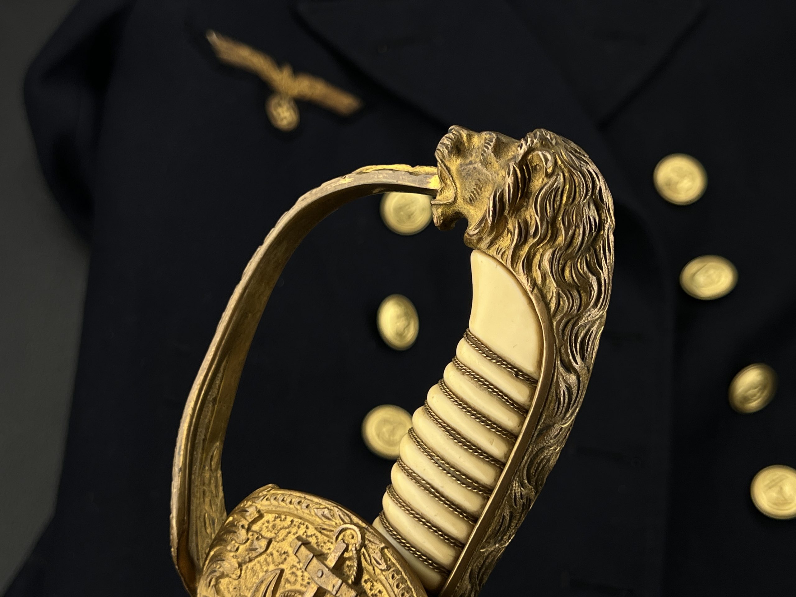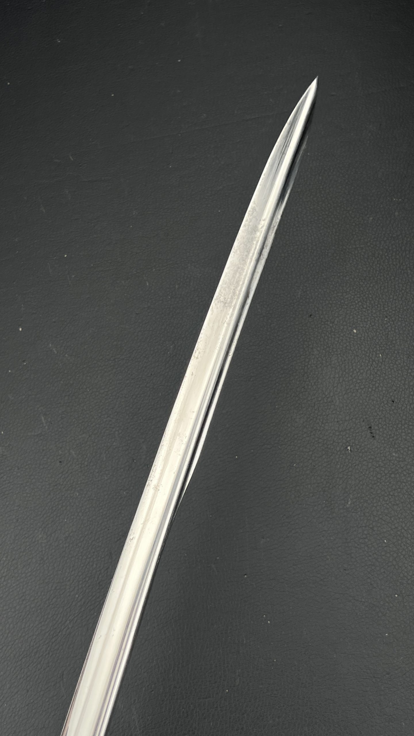 Судя по имеющимся клеймам, сабля является не частной покупкой, а официально выданным флотом служебным образцом, что подтверждается соответствующими служебными маркировками. Клеймо в виде буквы «M» над якорем представляет собой военно-морской приёмочный штамп первого образца. Маркировка «O.92» расшифровывается как «O» — Ostsee (Балтийское море), «92» — номер оружия.