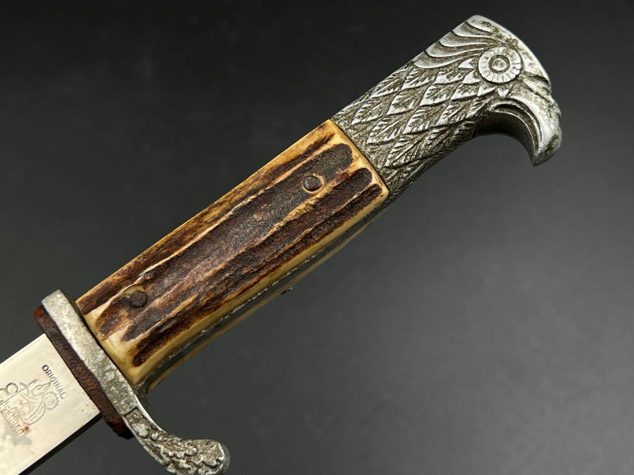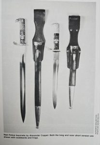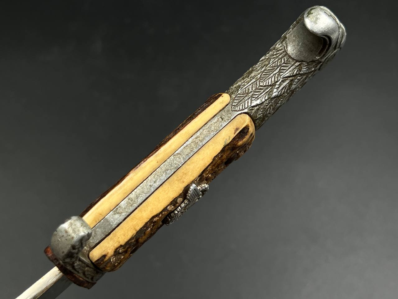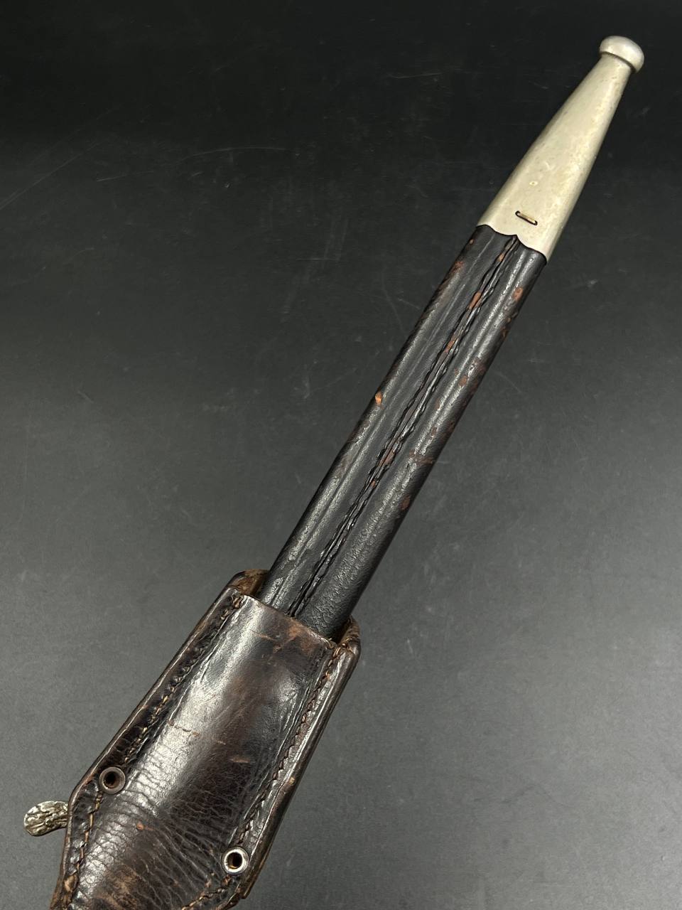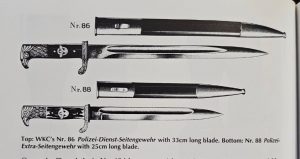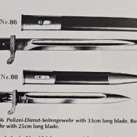 Редкий тип полицейского штыка, выпущенный уже в период Третьего рейха. В отличие от большинства штыков, состоявших на вооружении полиции, данный экземпляр изначально изготовлен в уставном размере — не укорочен и не является переделкой из клинков Веймарского периода.