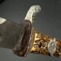 Отдельного внимания заслуживает материал изготовления рукояти и прибора ножен: в отличие от стандартных полицейских штыков, этот образец выполнен с применением алюминиевого сплава.