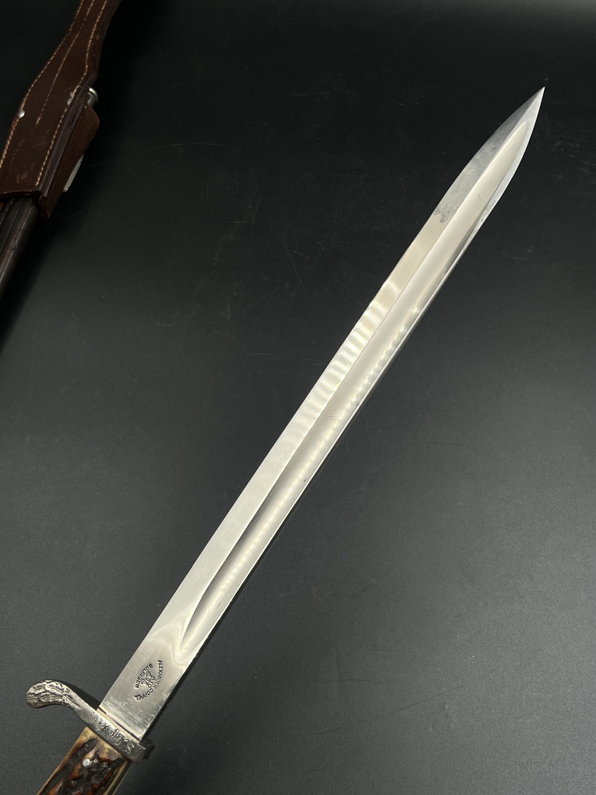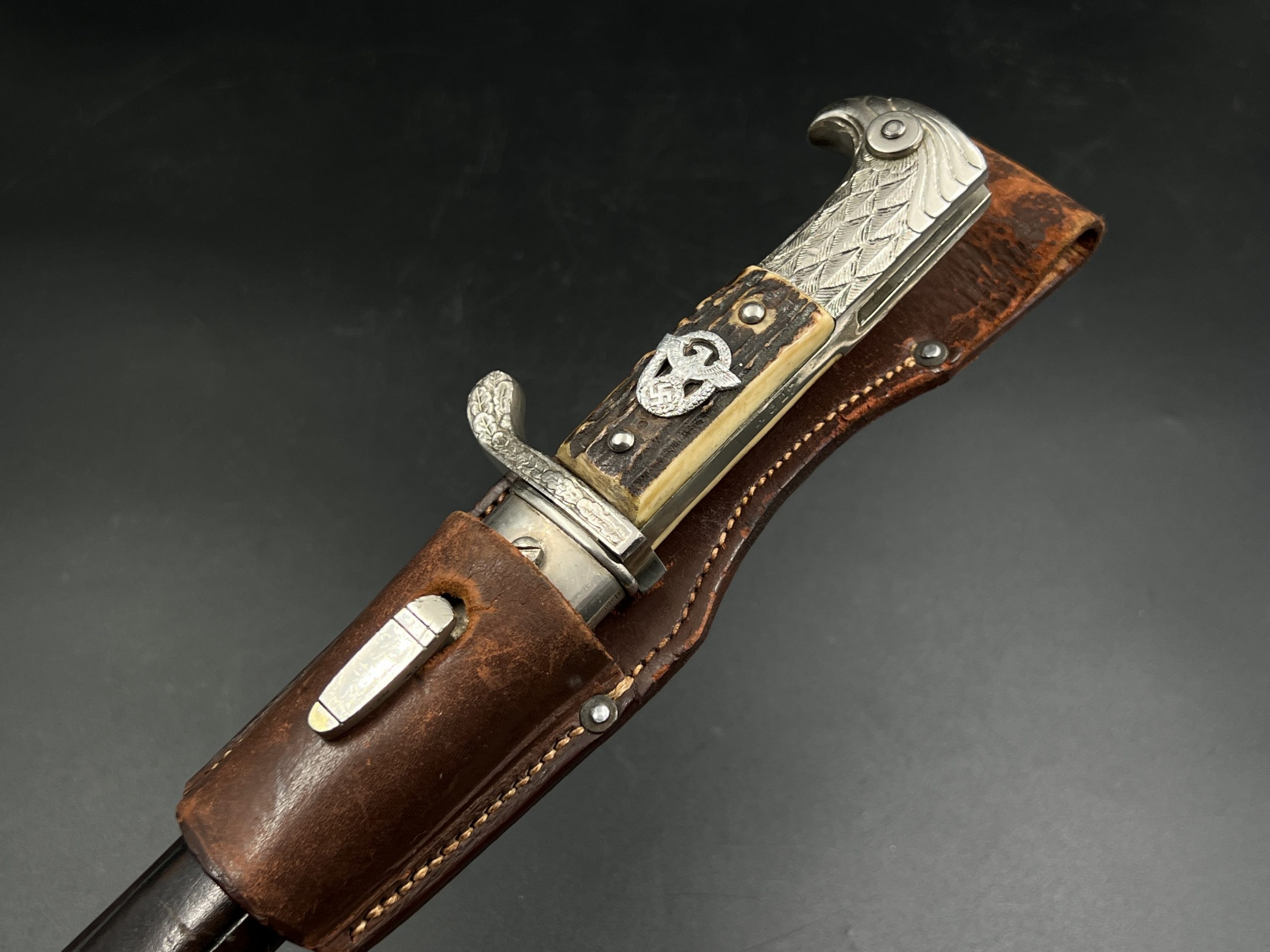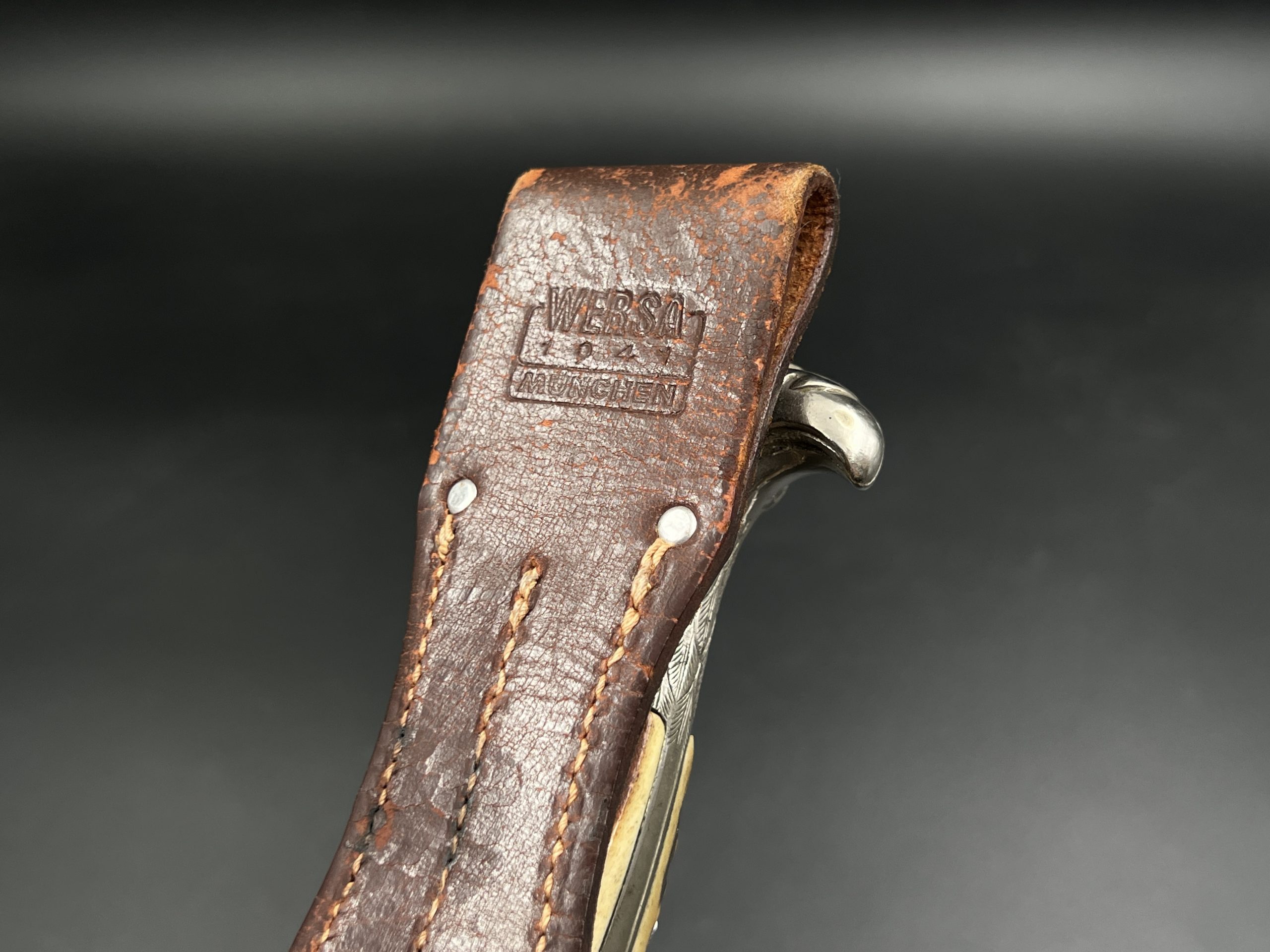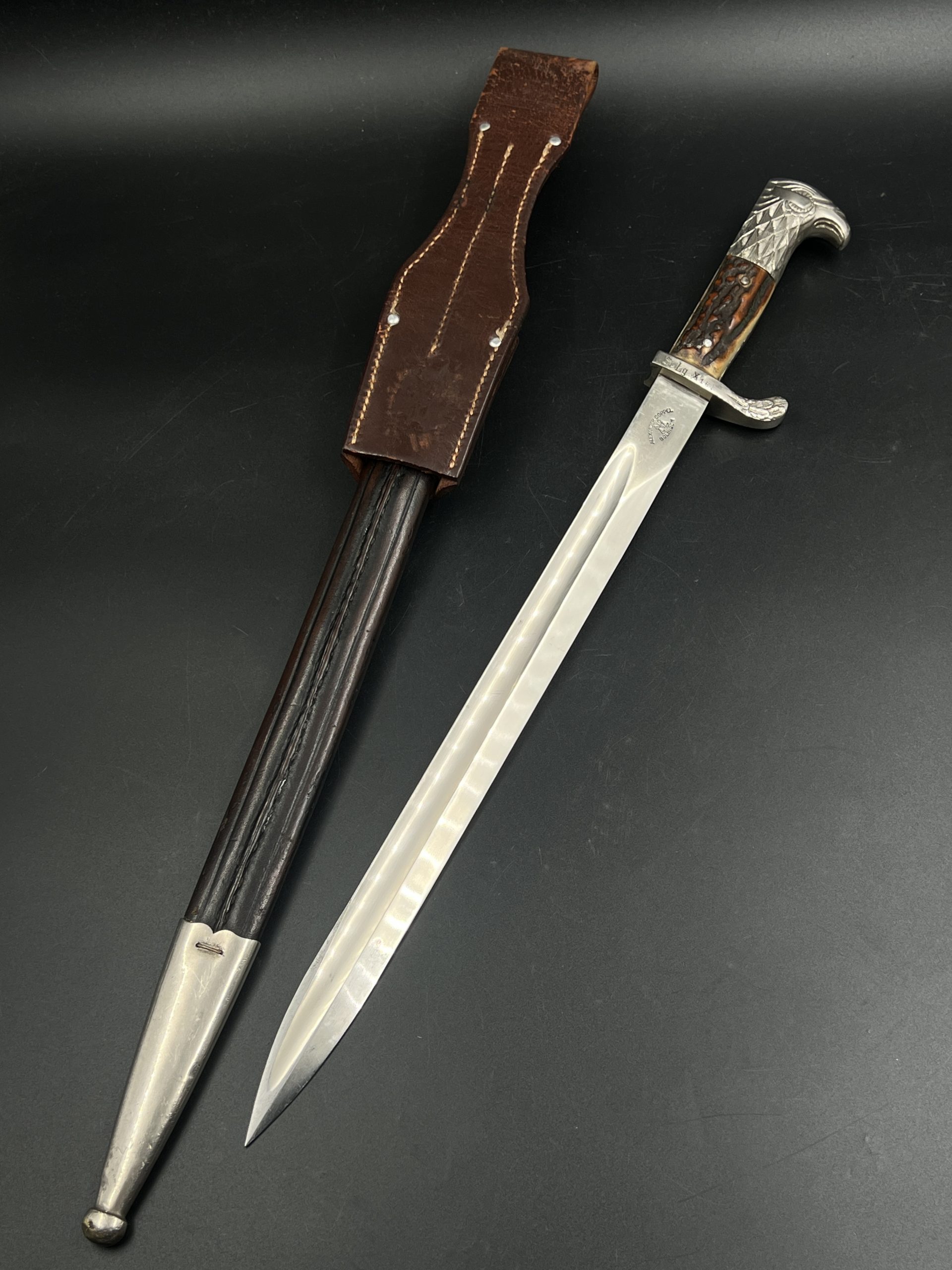 На крестовине и на ножнах с обратной стороны присутствует клеймо «S. Lg. 18.». Согласно таблице из книги Томаса М. Джонсона “Collecting the Edged Weapons of the Third Reich” (Коллекционирование холодного оружия Третьего рейха) в томе 4, страница 215-216, эту надпись можно расшифровать следующим образом: S –маркировка принадлежности к муниципальной полиции (Schutzpolizei), Lg – маркировка административного округа Lüneburg.