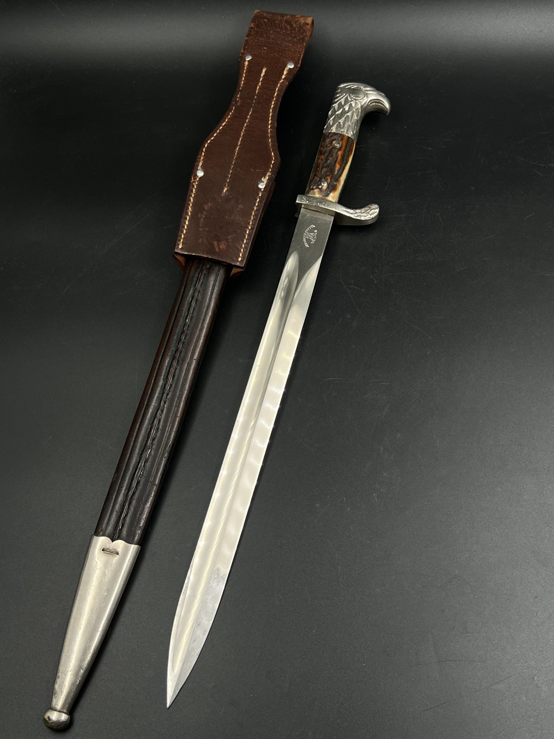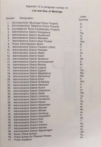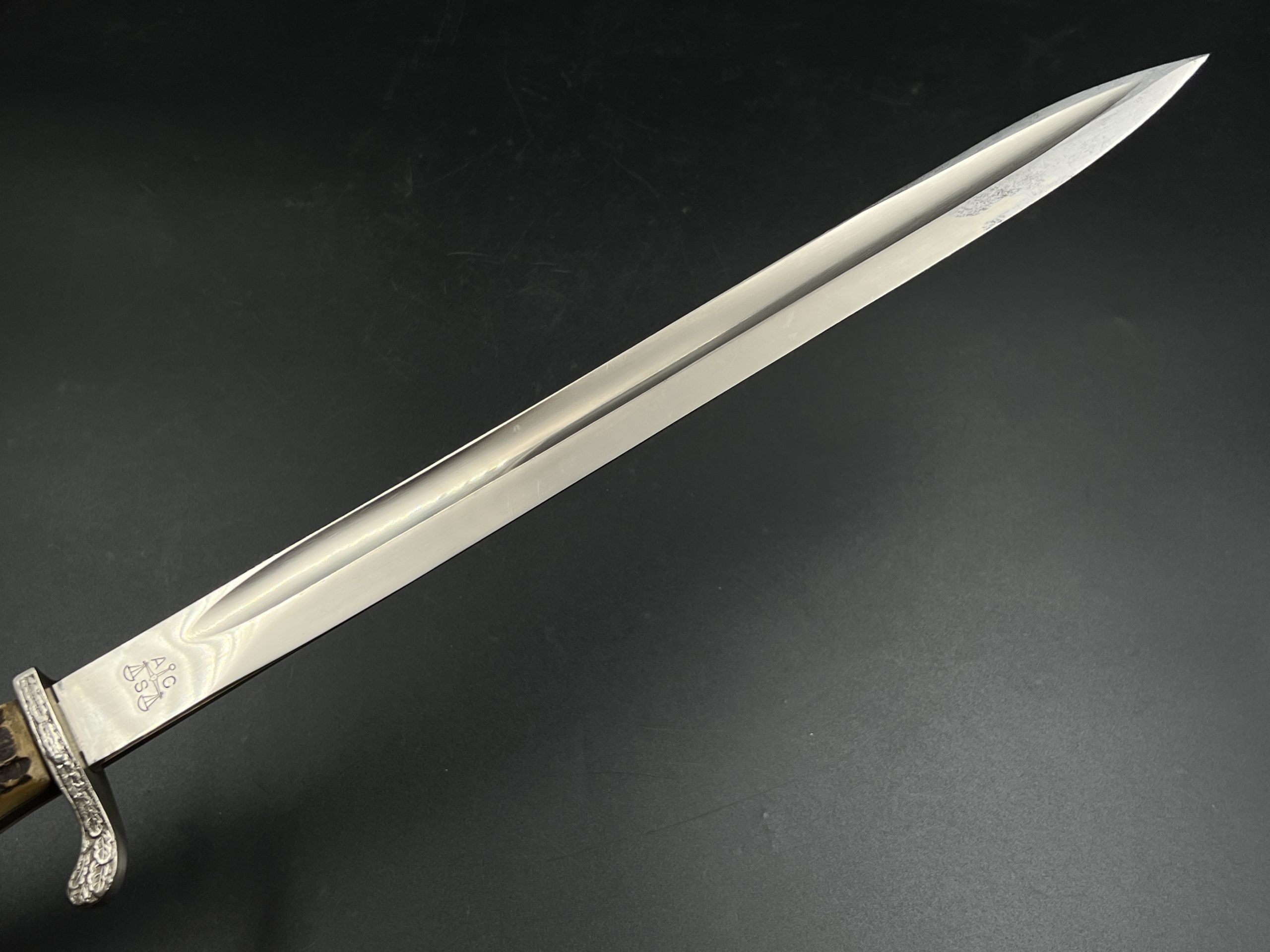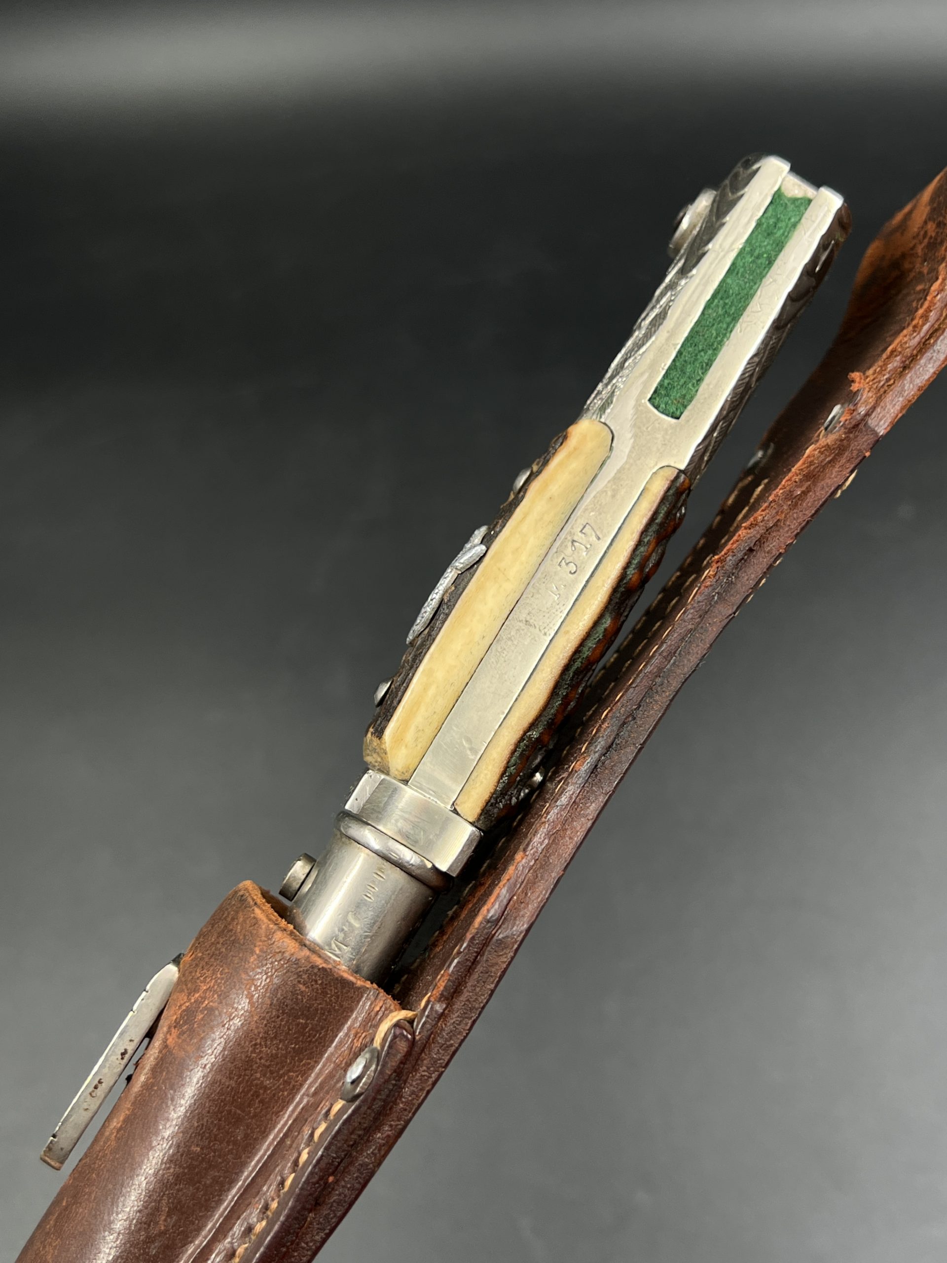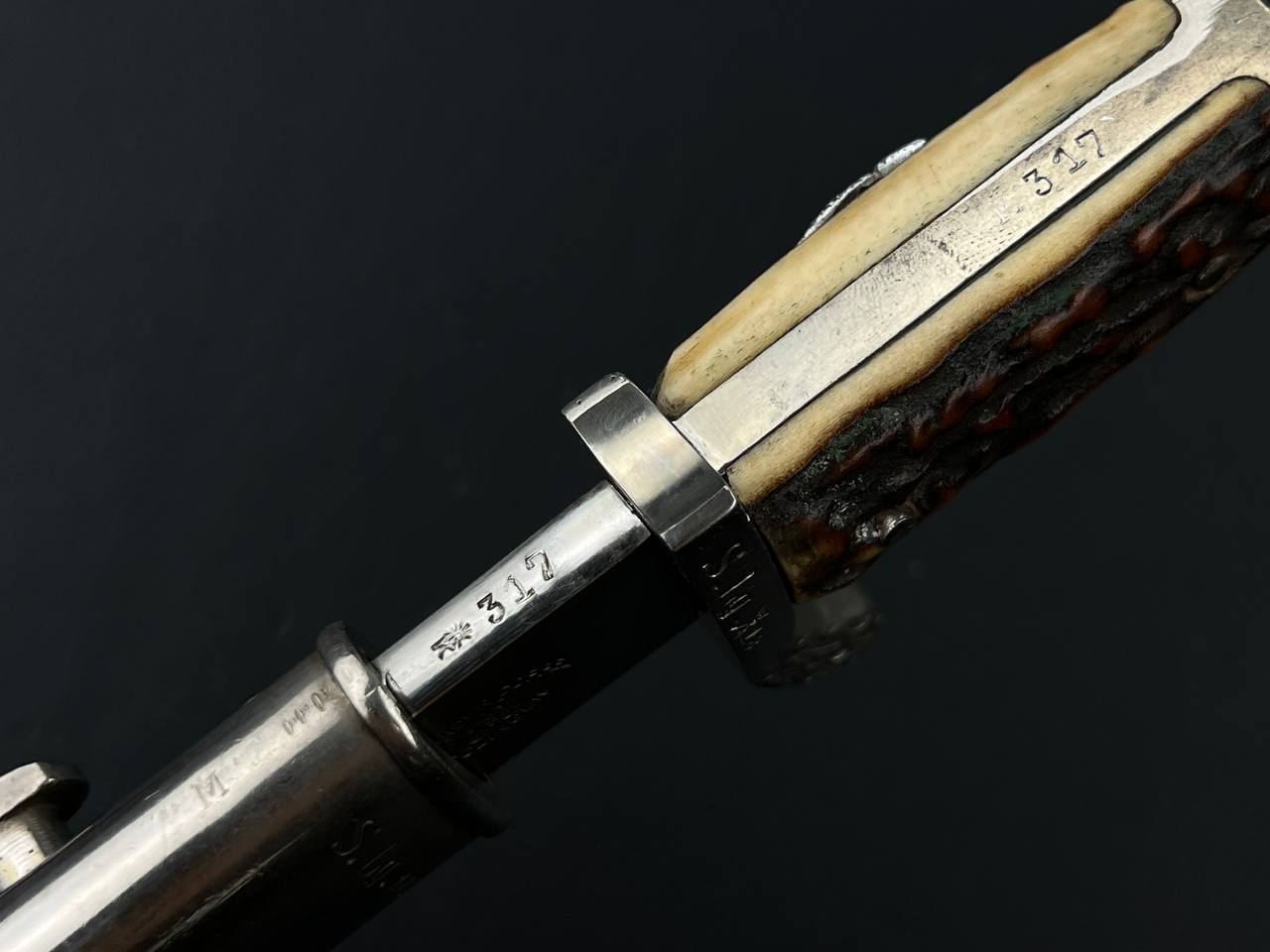 На крестовине и на ножнах с обратной стороны присутствует клеймо «S. Lg. 18.». Согласно таблице из книги Томаса М. Джонсона “Collecting the Edged Weapons of the Third Reich” (Коллекционирование холодного оружия Третьего рейха) в томе 4, страница 215-216, эту надпись можно расшифровать следующим образом: S –маркировка принадлежности к муниципальной полиции (Schutzpolizei), Lg – маркировка административного округа Lüneburg.