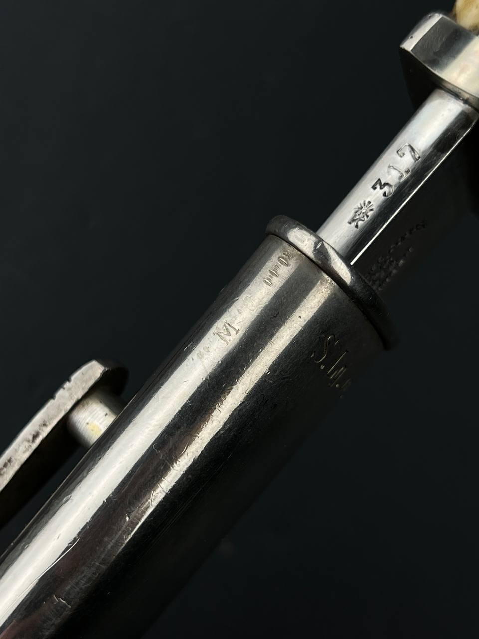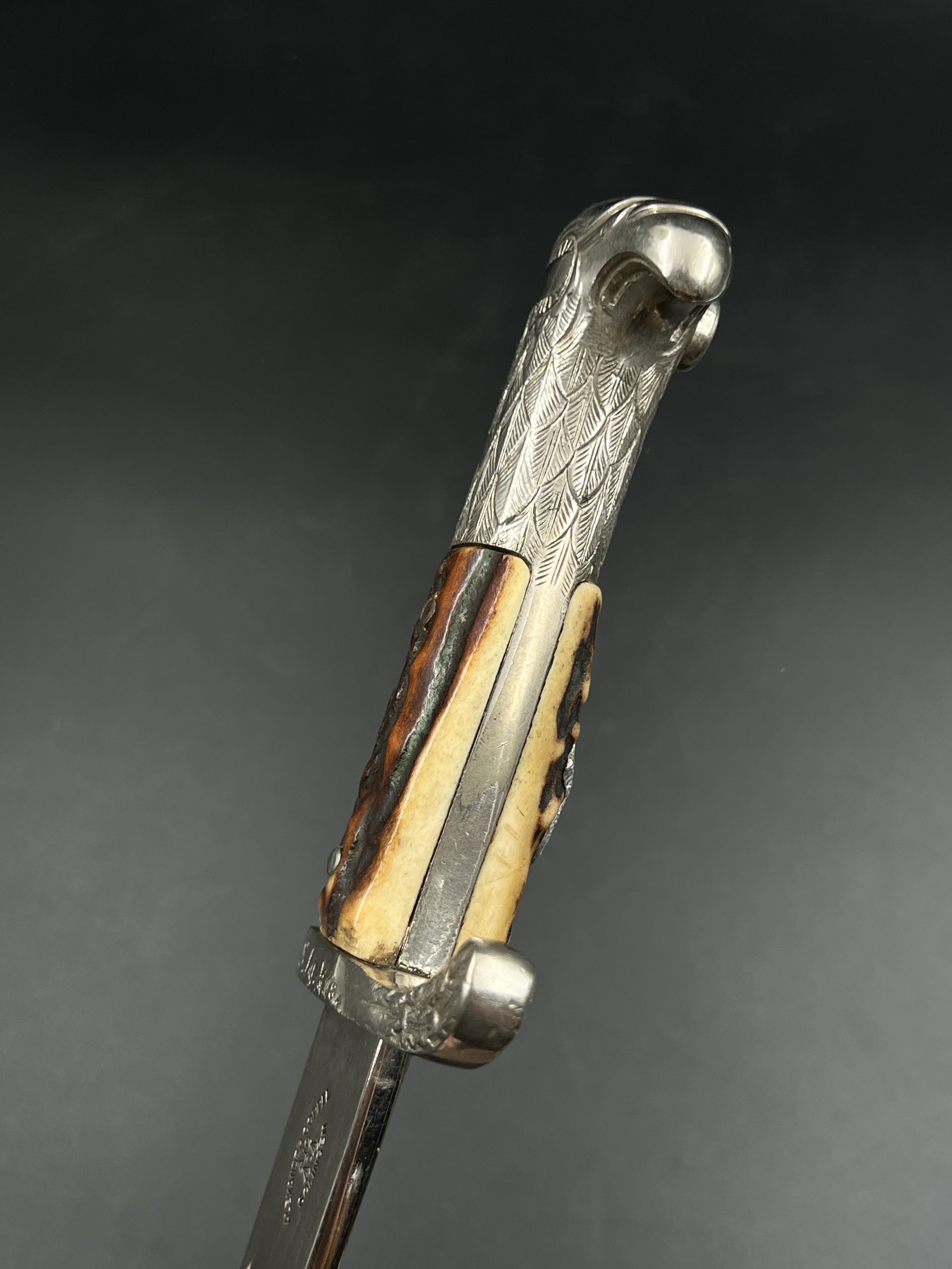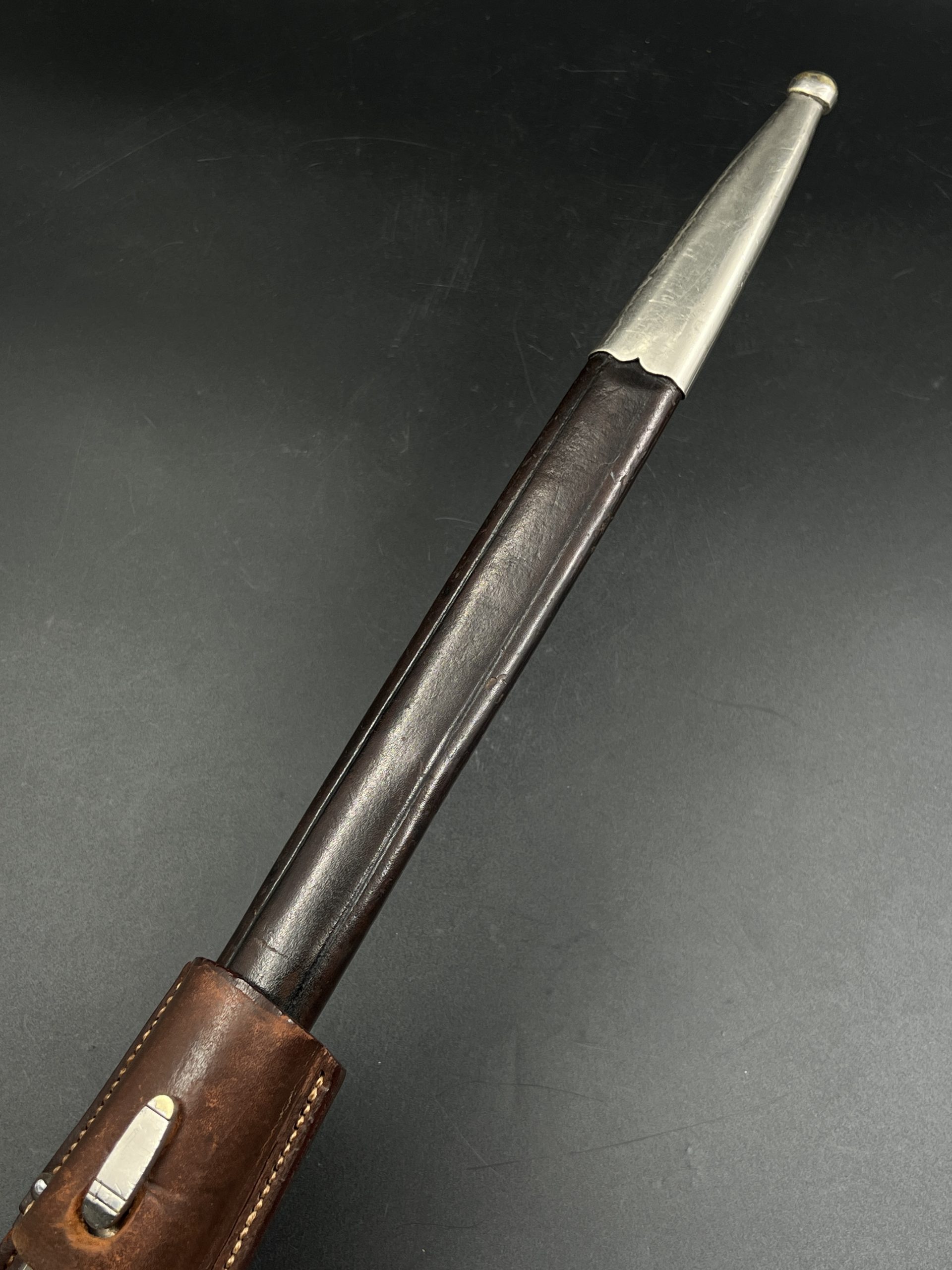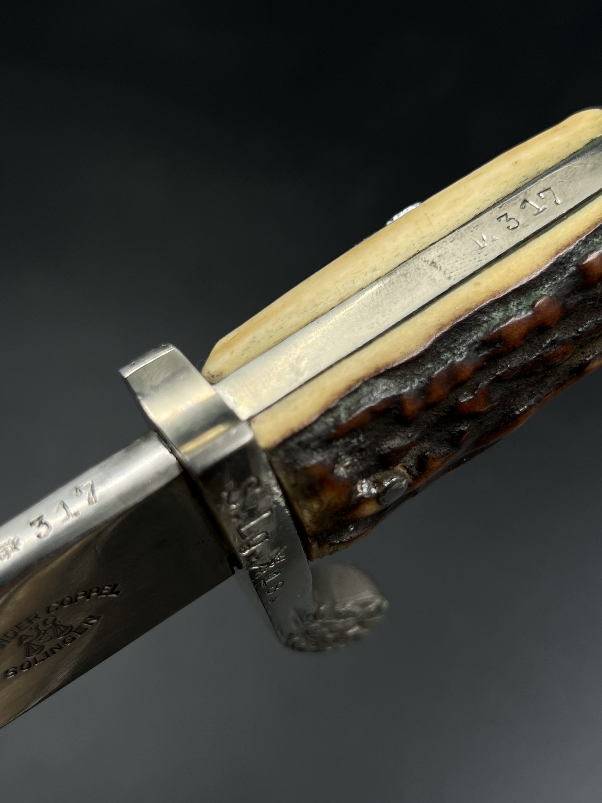 На крестовине и на ножнах с обратной стороны присутствует клеймо «S. Lg. 18.». Согласно таблице из книги Томаса М. Джонсона “Collecting the Edged Weapons of the Third Reich” (Коллекционирование холодного оружия Третьего рейха) в томе 4, страница 215-216, эту надпись можно расшифровать следующим образом: S –маркировка принадлежности к муниципальной полиции (Schutzpolizei), Lg – маркировка административного округа Lüneburg.