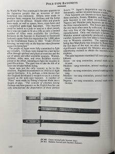 Во время Второй мировой войны, когда угроза вторжения на территорию Японии стала реальной, началось производство упрощённого оборонительного оружия для гражданского населения и отрядов ополчения. Одним из таких образцов стал копейный штык (pole-type bayonet) — клинок, который мог использоваться как короткое холодное оружие или крепиться к деревянному древку, превращаясь в импровизированную пику.