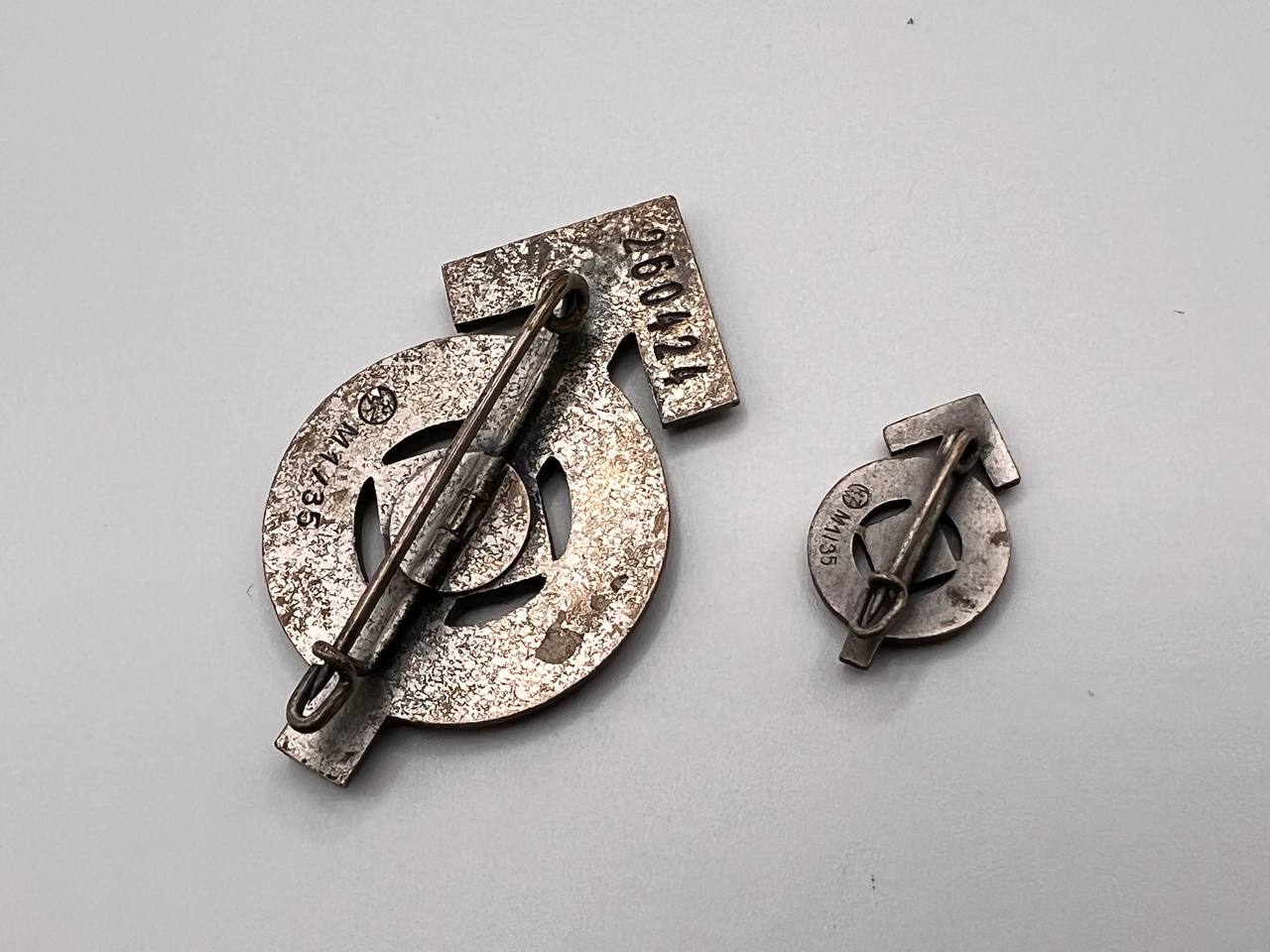 Спортивный знак подразделений HJ образца 1934 года в серебре. [WÄCHTLER & LANGE] RZM код: M1/35. Комплект с фрачной миниатюрой. Номерной - 260424. От Алексея С.