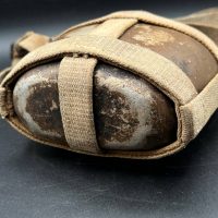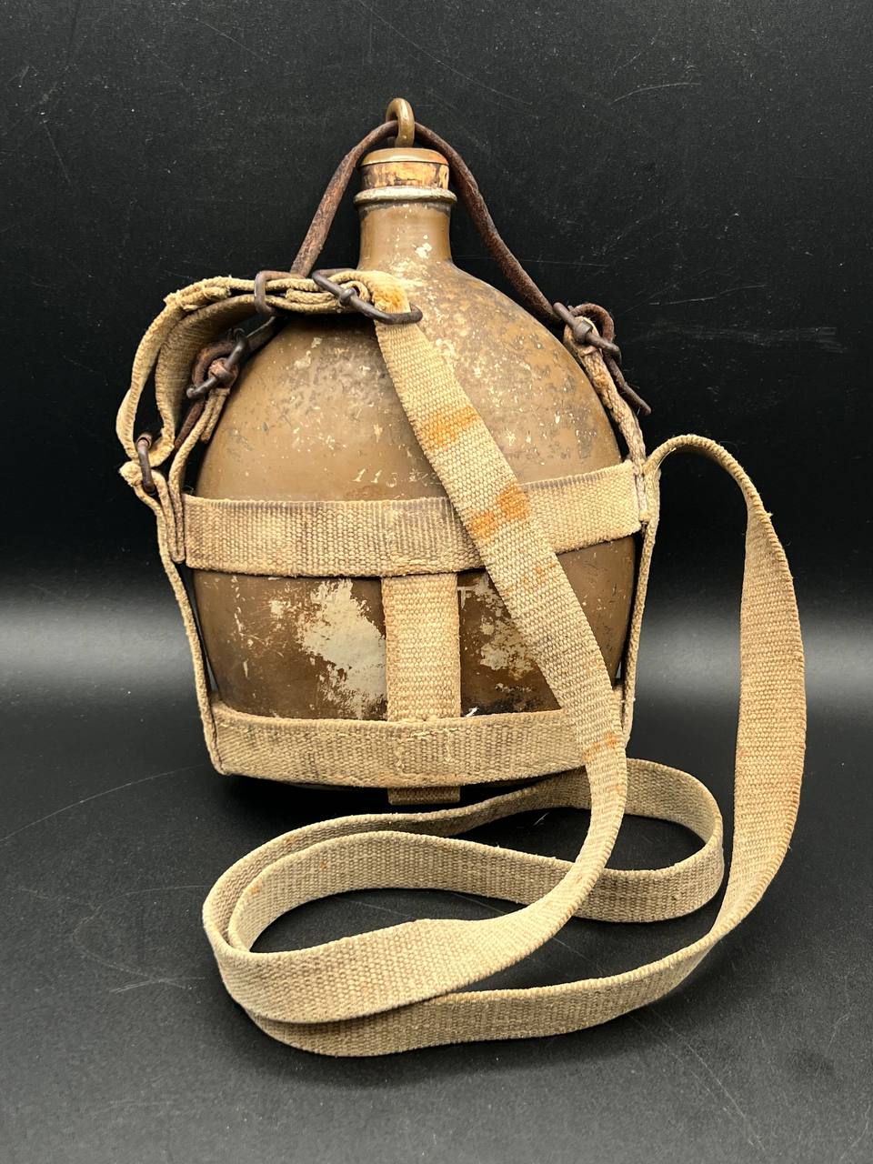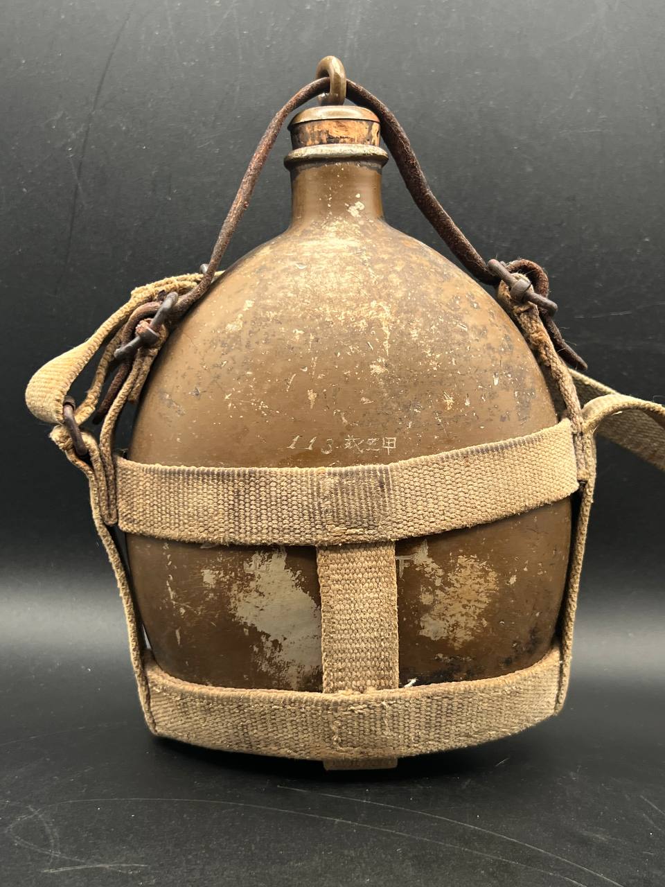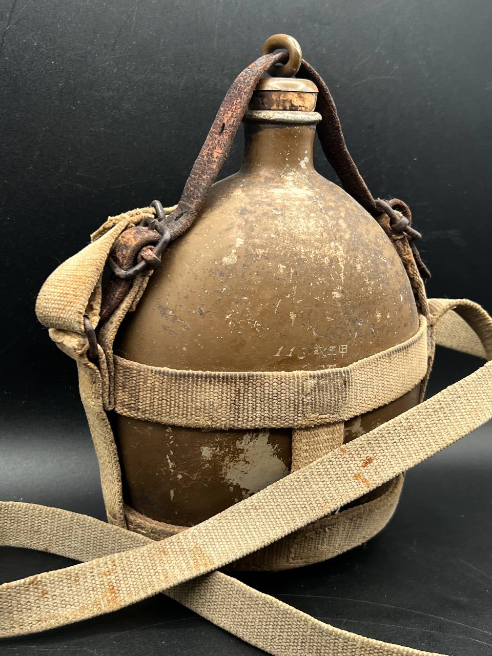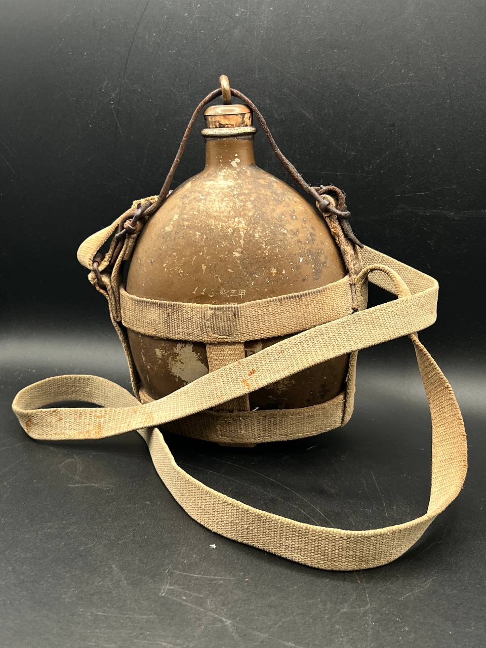 Такие фляги являлись стандартным снаряжением японской пехоты на всех фронтах Тихоокеанского театра военных действий. Данный экземпляр сохранился в подлинном «полевом» состоянии, с оригинальными ремнями и креплениями.