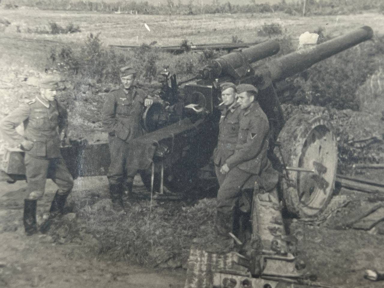 Фото немецкой тяжёлой гаубицы sFH 18 (150 мм) на позиции с расчётом. От Алексея С.