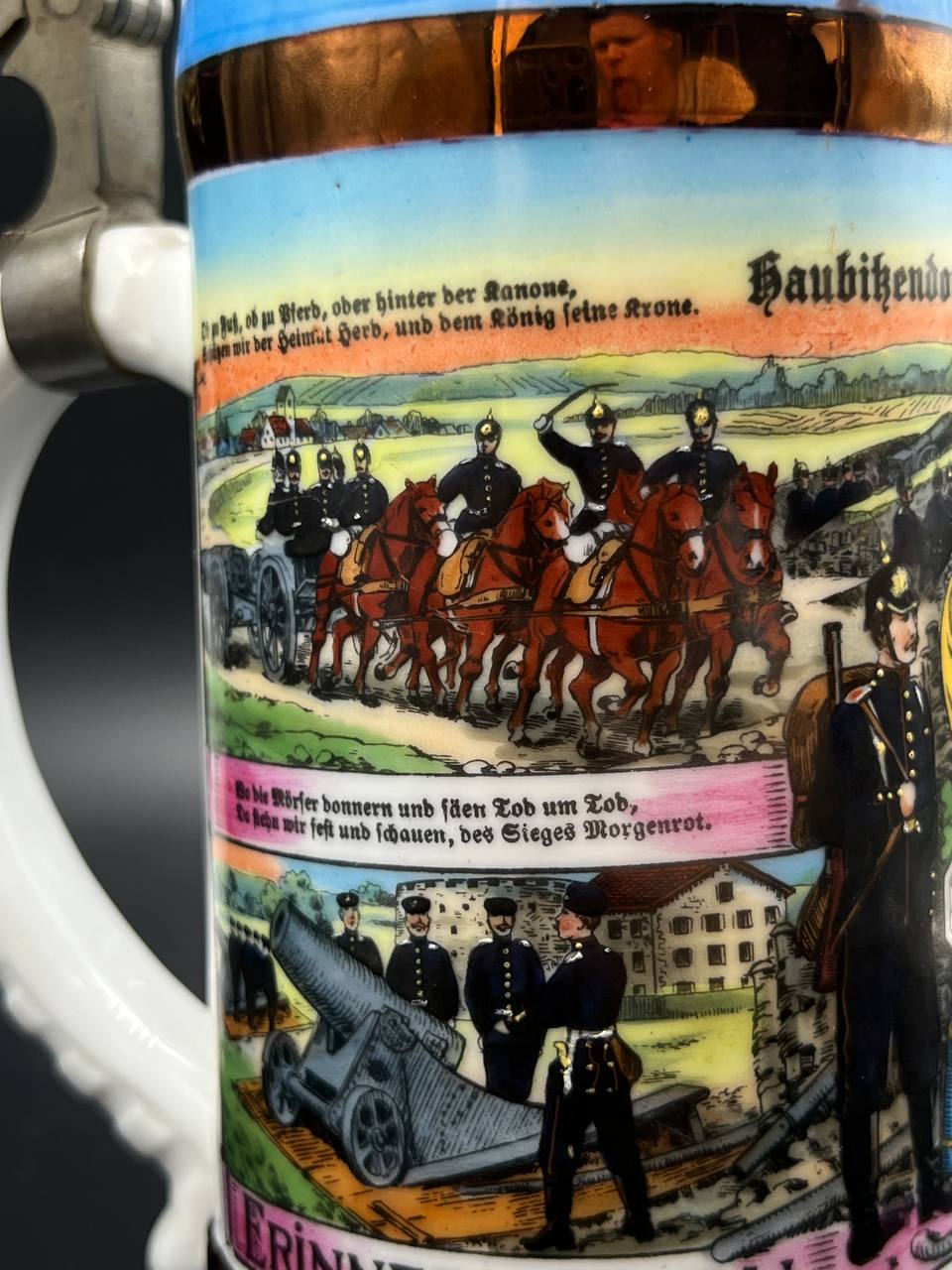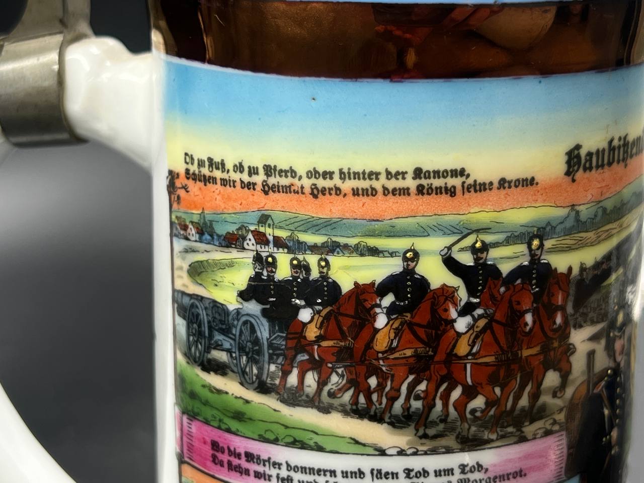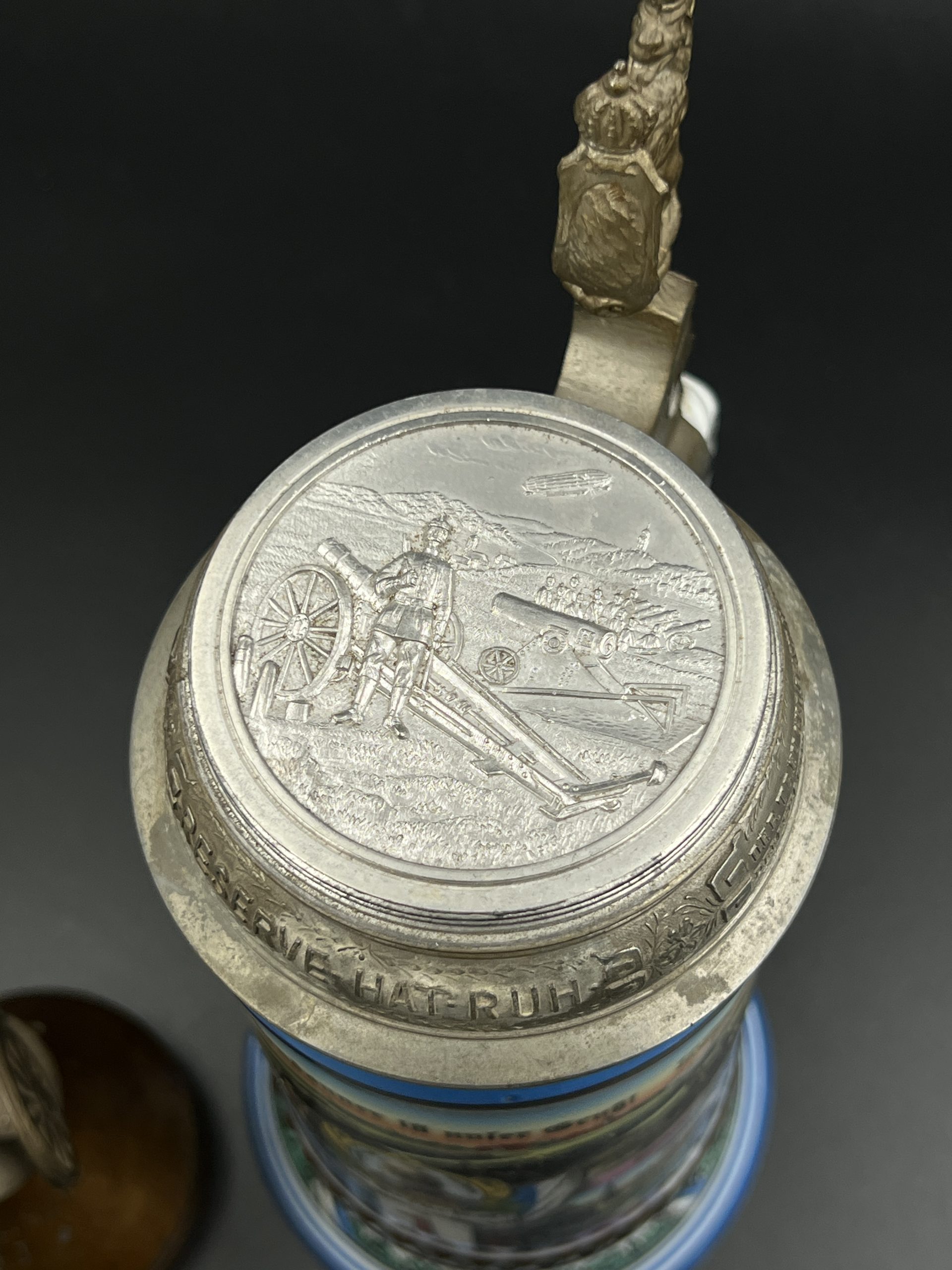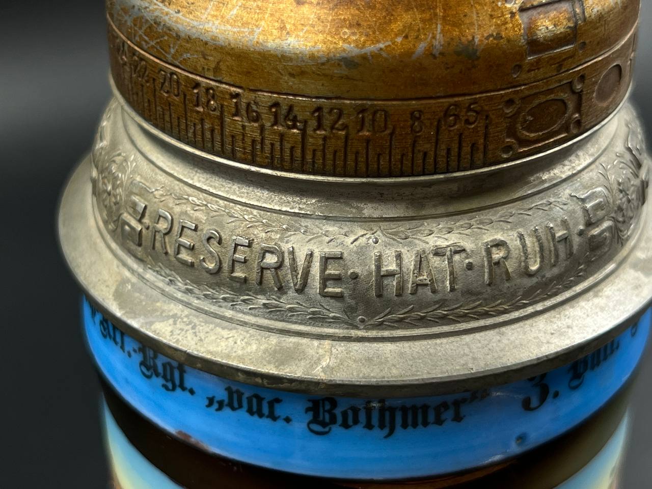 Немецкая резервистская пивная кружка с откручивающейся крышкой — 1-й пеший артиллерийский полк «фон Ботмер», 3-й батальон, Neu-Ulm (1911–1913).