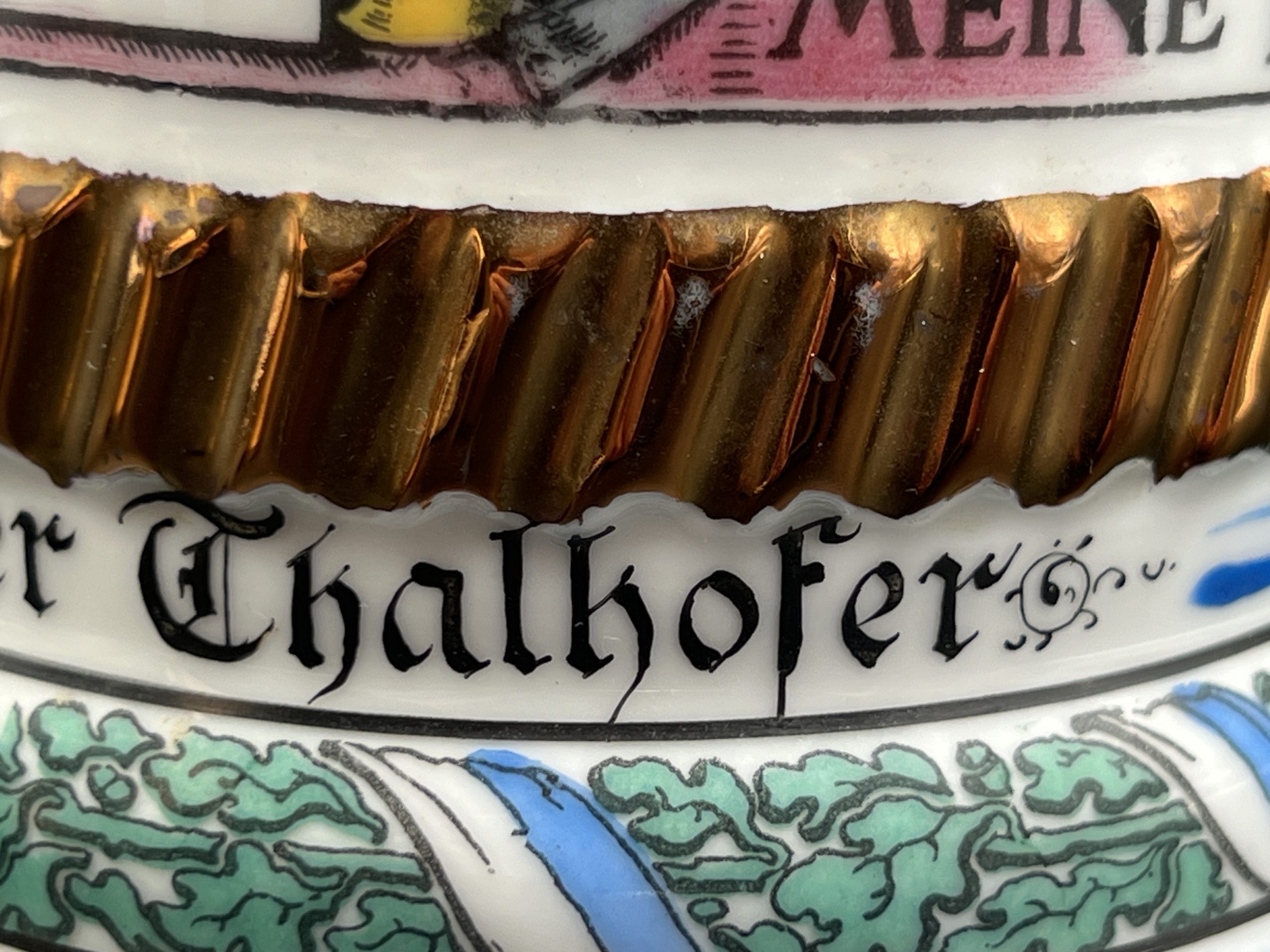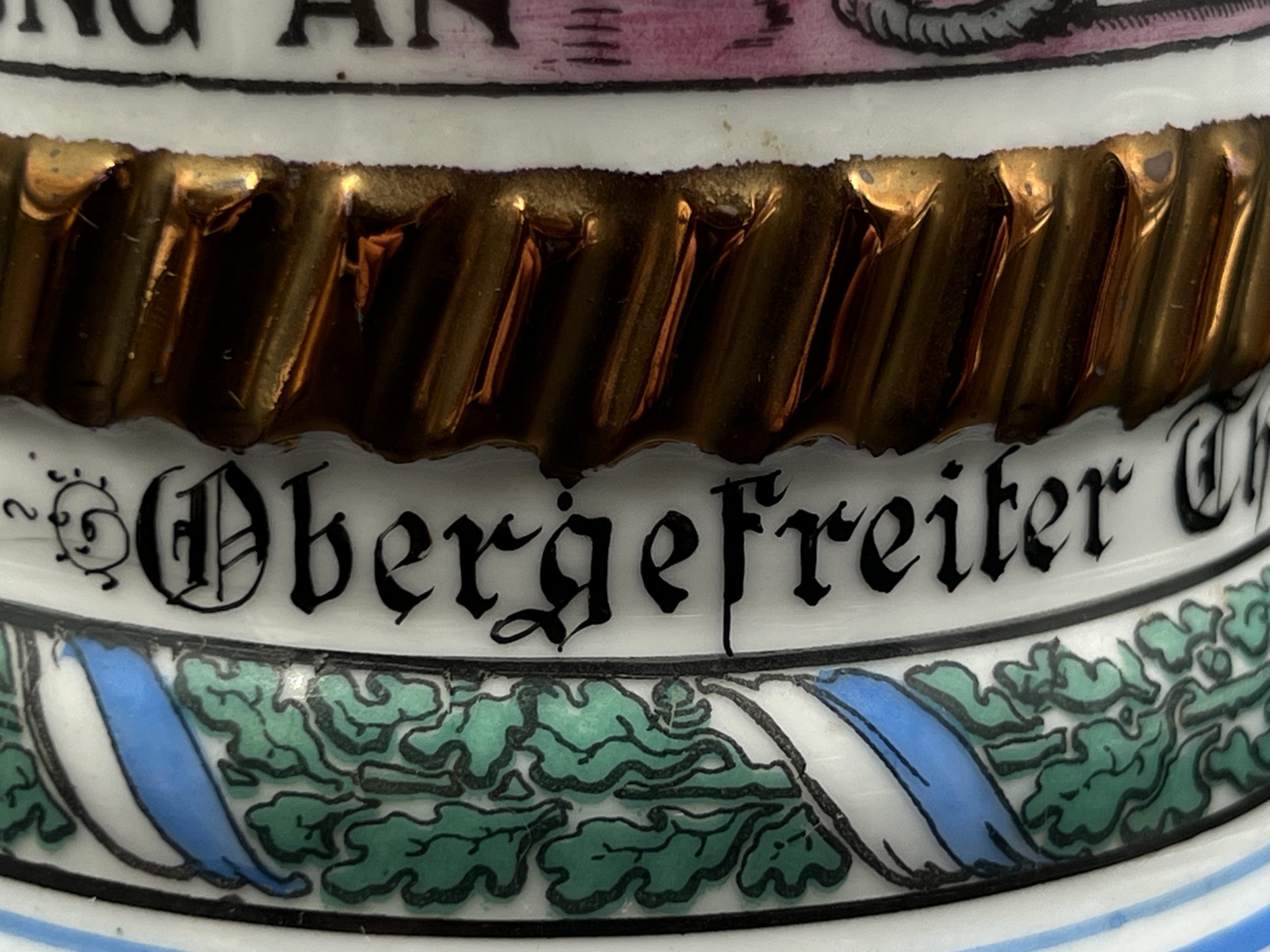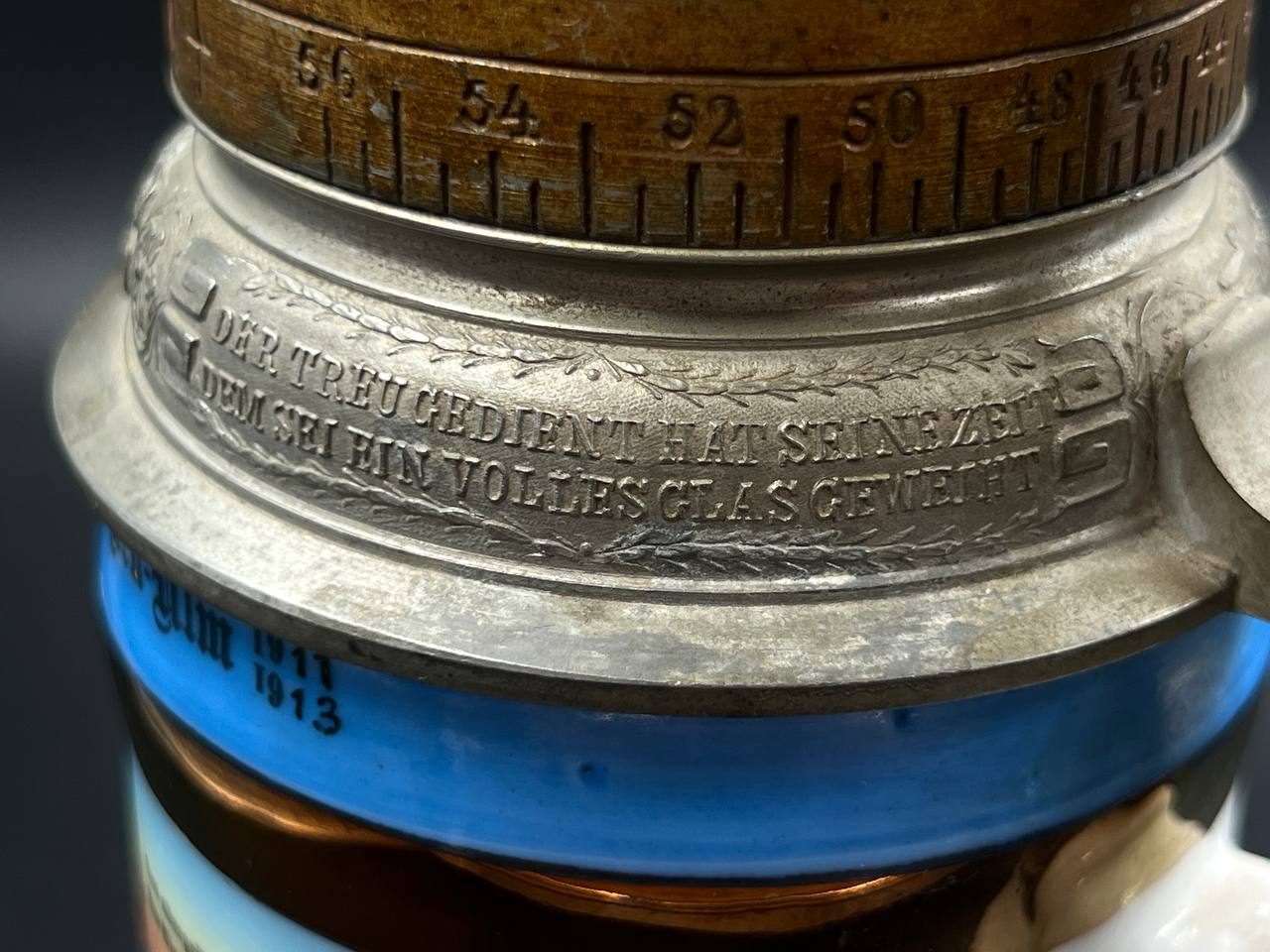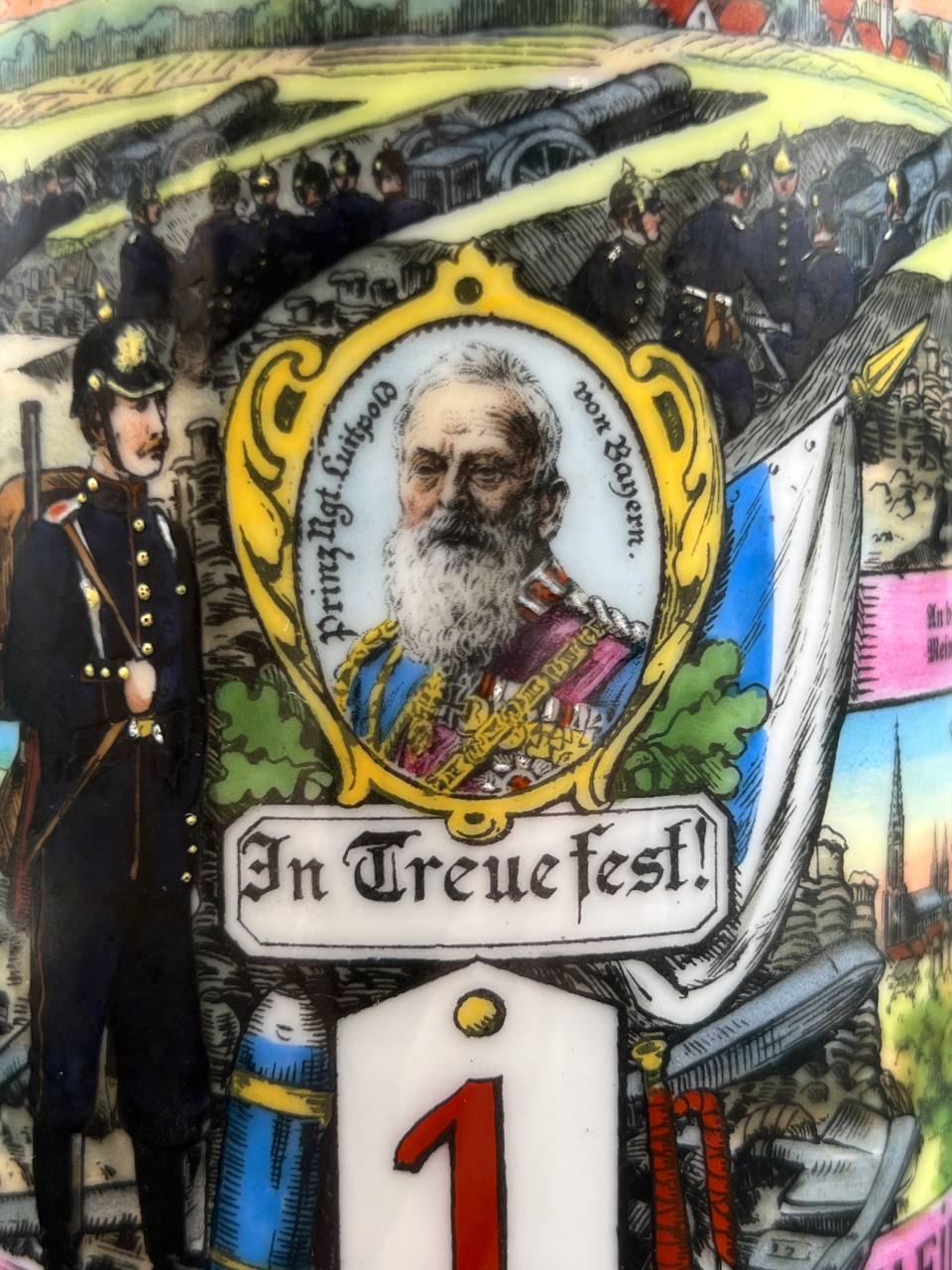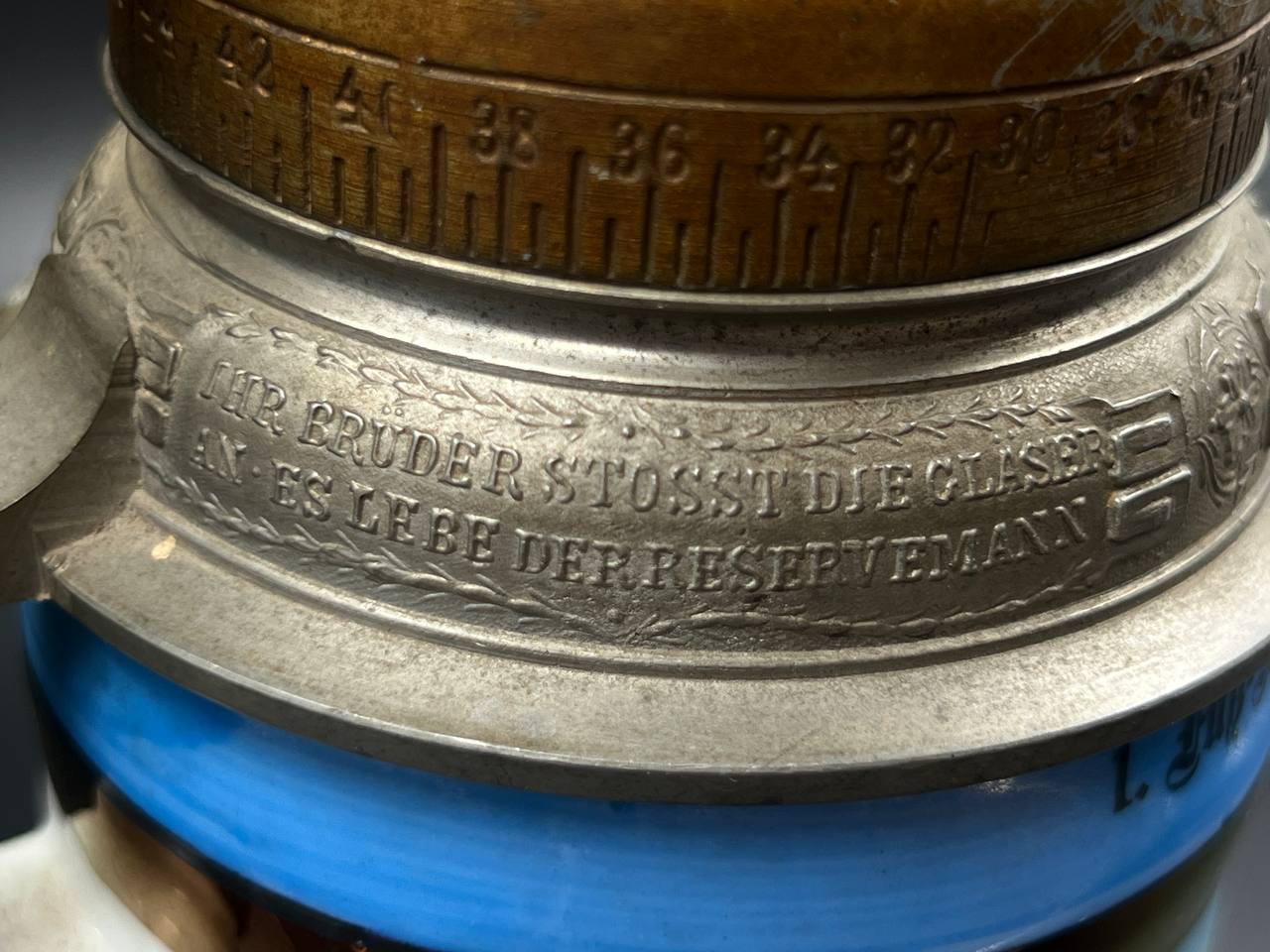 Немецкая резервистская пивная кружка с откручивающейся крышкой — 1-й пеший артиллерийский полк «фон Ботмер», 3-й батальон, Neu-Ulm (1911–1913).