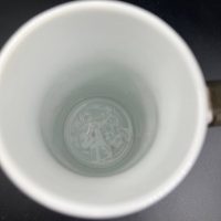 Ручка кружки выполнена с декоративным элементом в виде льва.