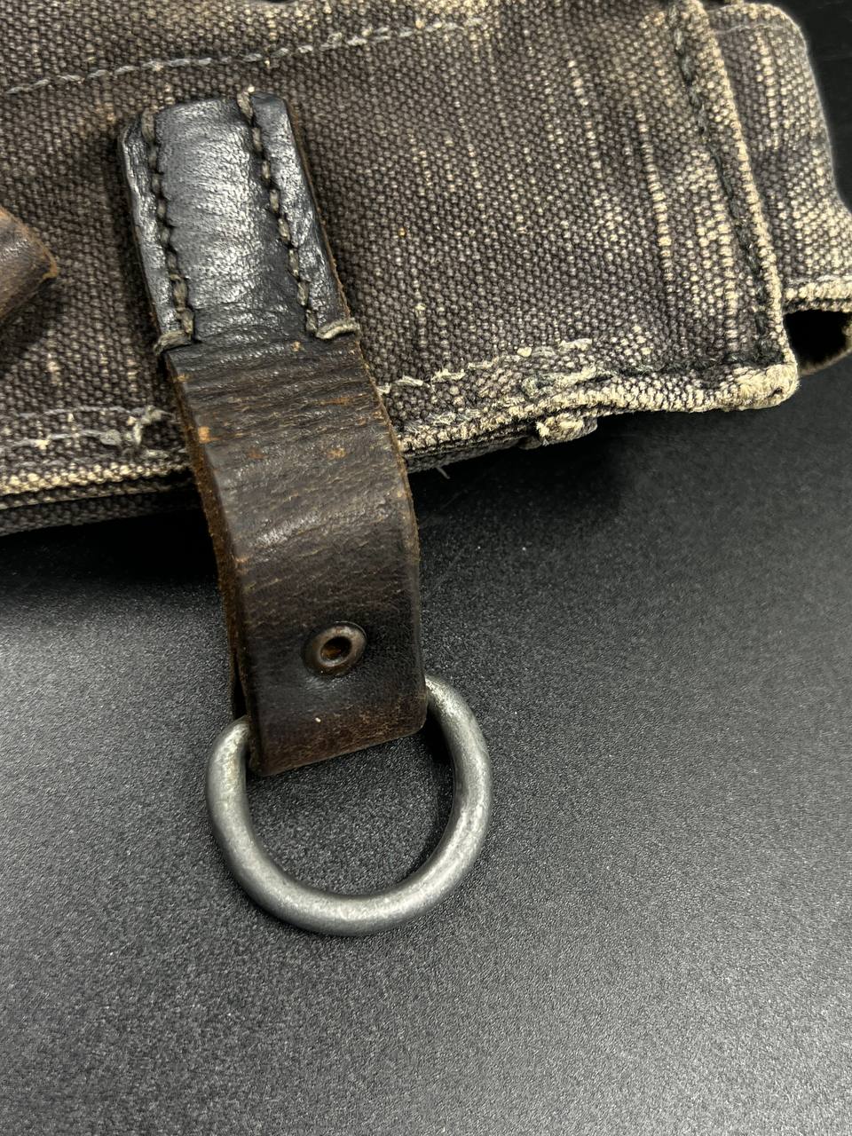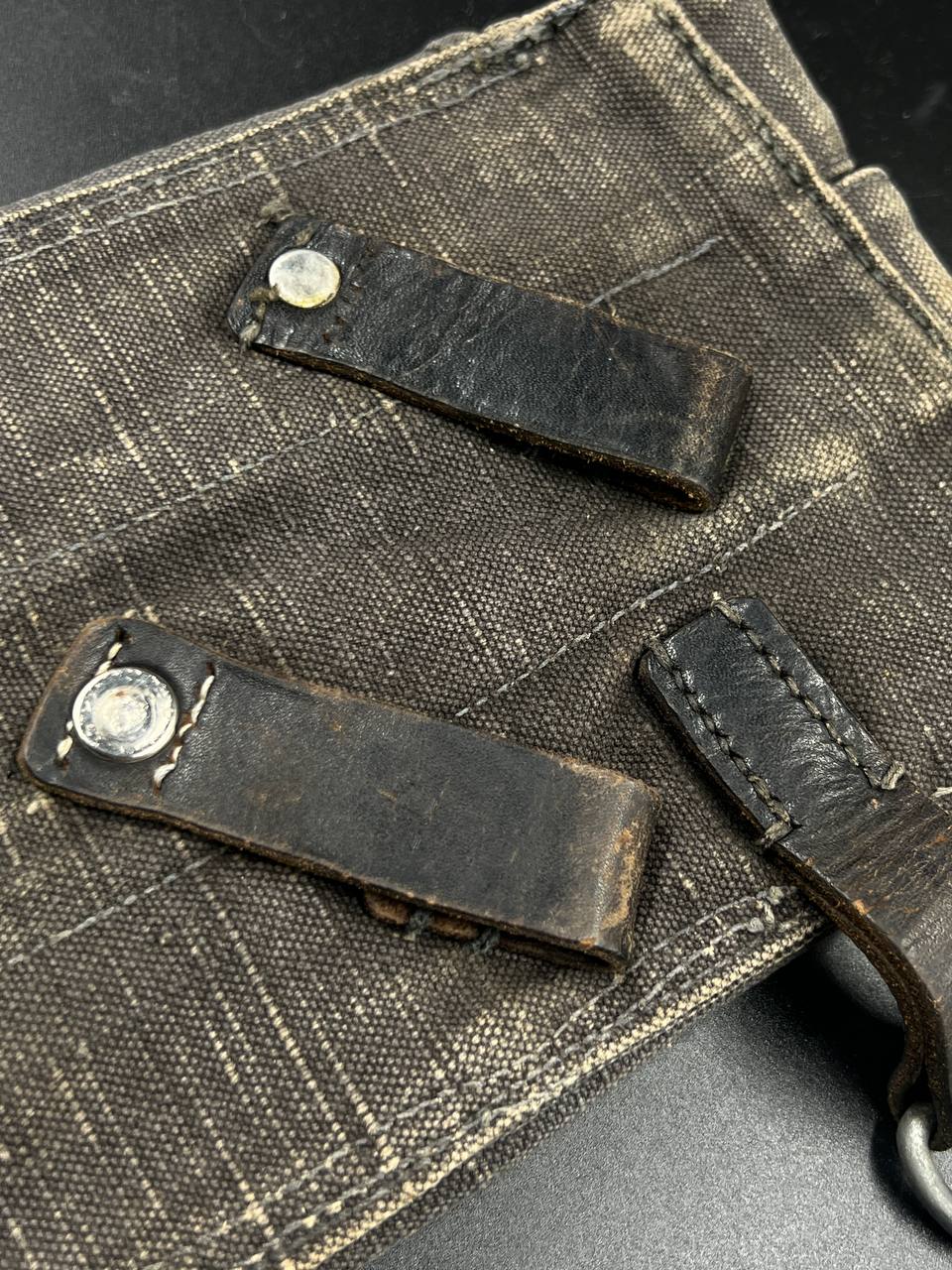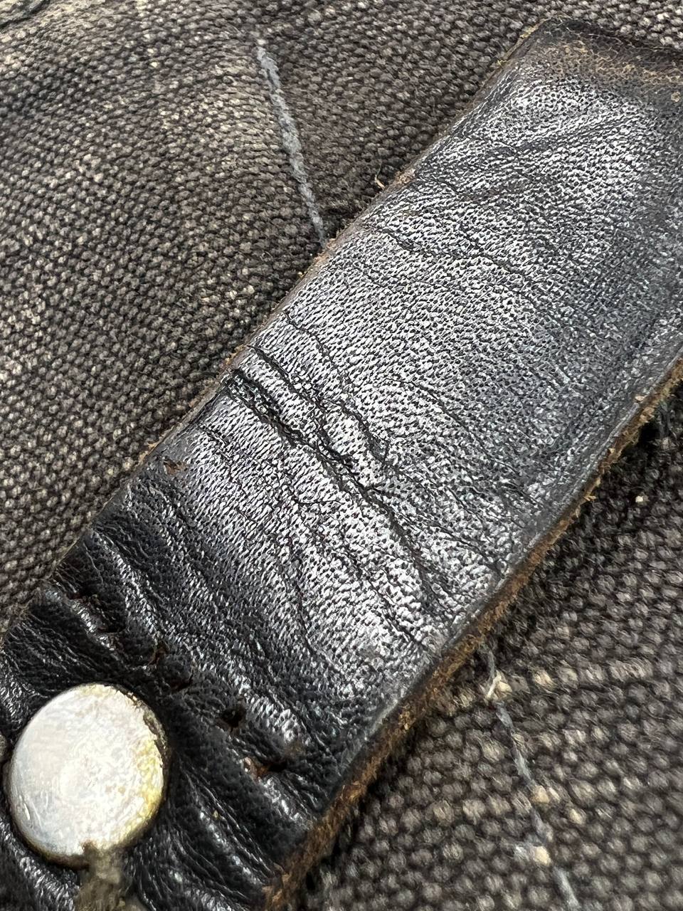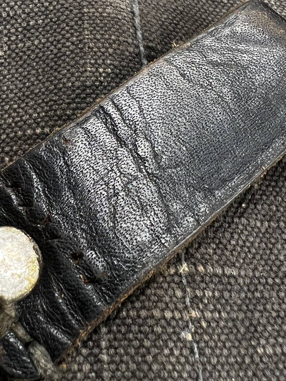 На тыльной стороне виден ремонт — петли посажены на заклёпки.