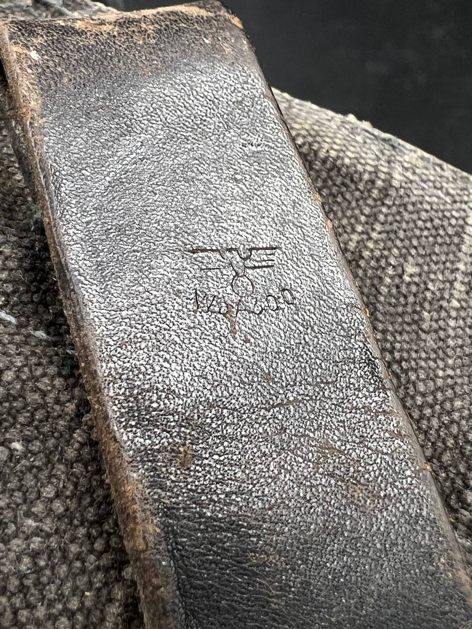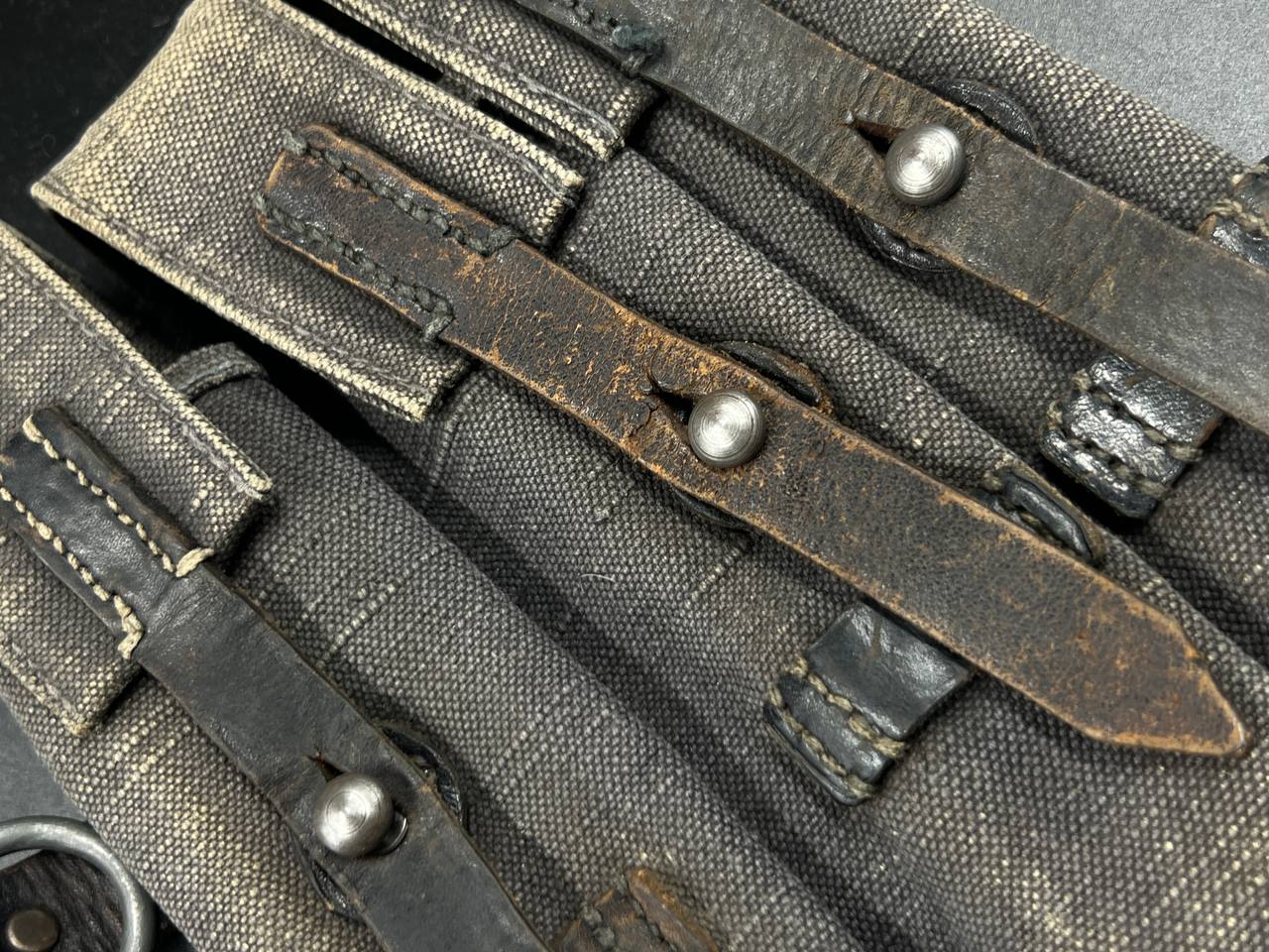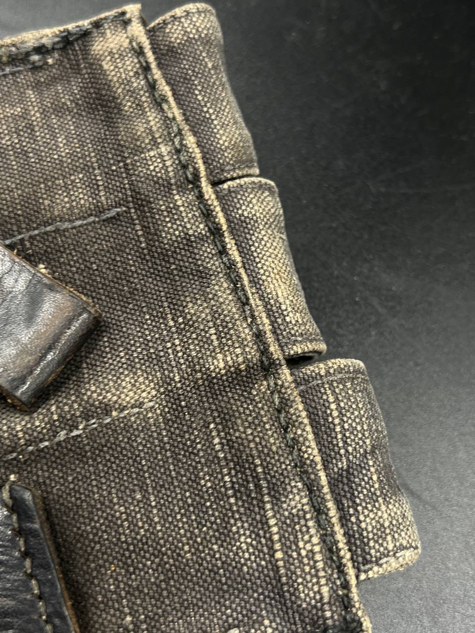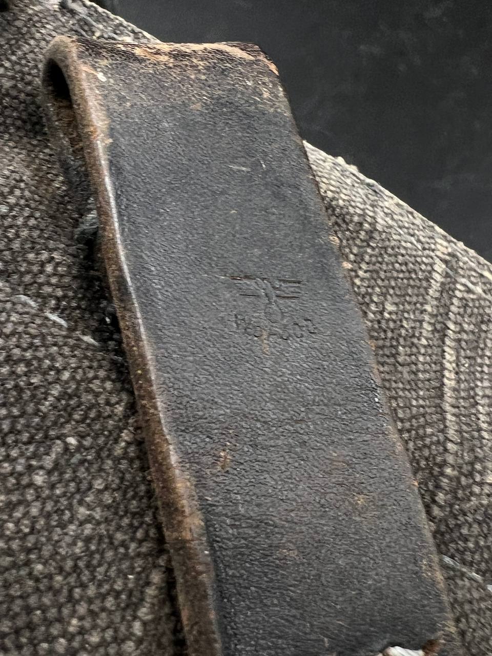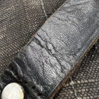На тыльной стороне виден ремонт — петли посажены на заклёпки.
